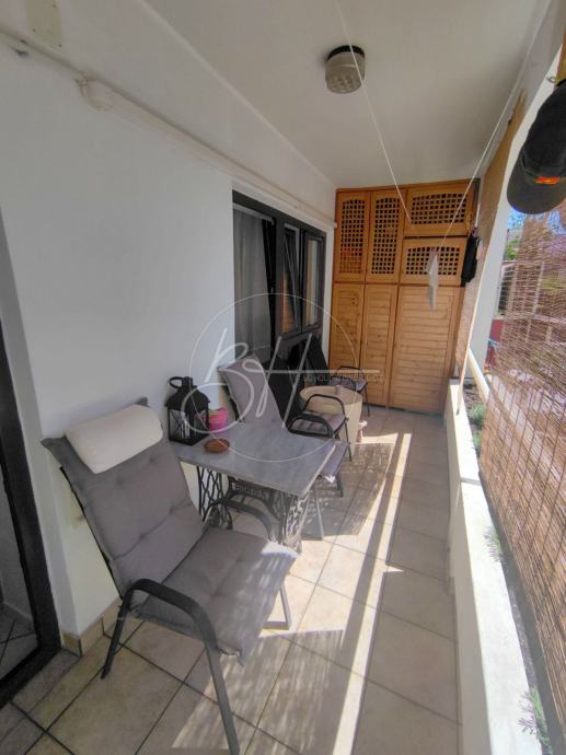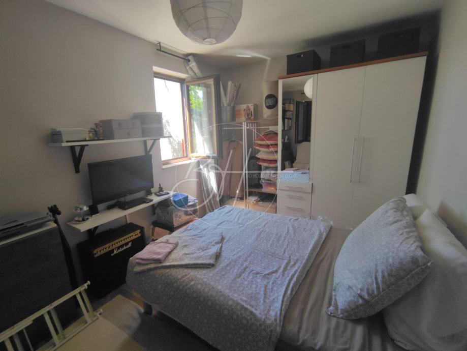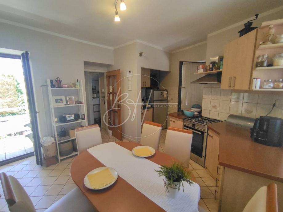 Na prvom katu se nalazi moderno uređeni stan koji se sastoji od hodnika, kupaonice, kuhinje, dnevnog boravka s blagovaonom, dvije spavaće sobe i otvorene terase.