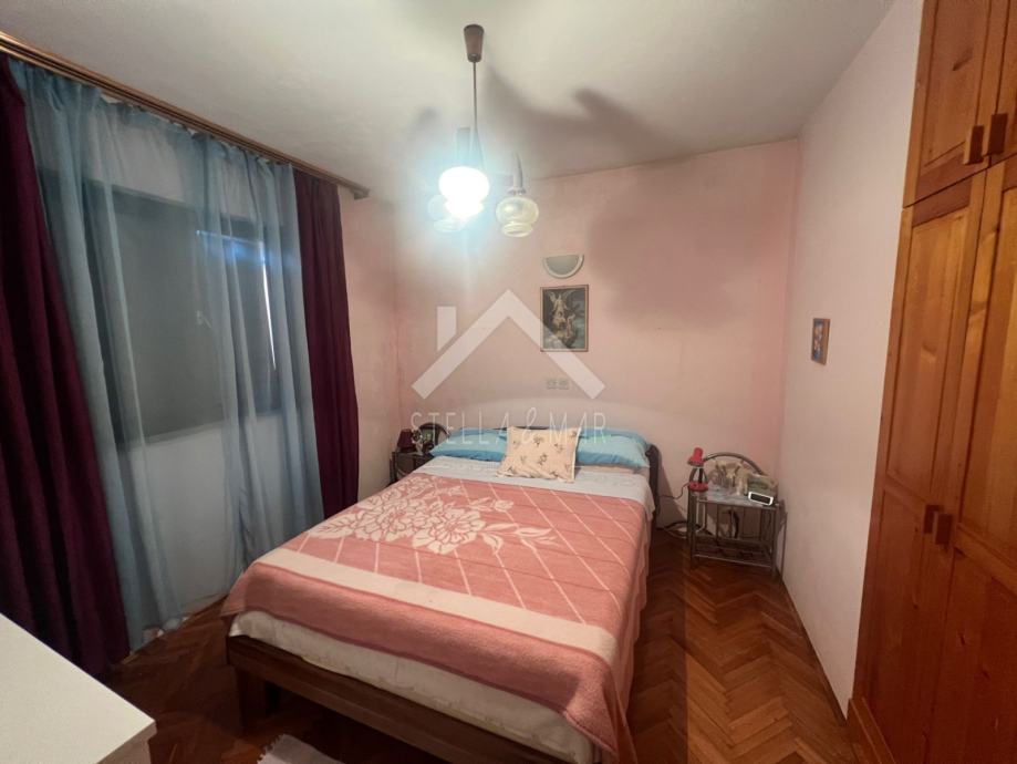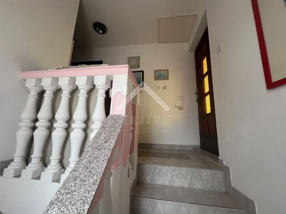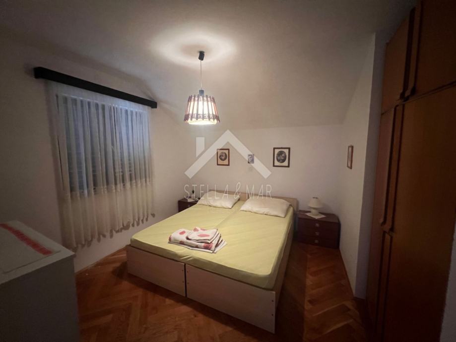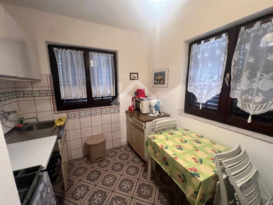 Stan u prizemlju sadrži jednu spavaću sobu, kuhinju sa blagovaonicom, dnevni boravak, kupaonicu i natkrivenu terasu. Vanjsko stepenište vodi na 1. kat na kojem je prostrana terasa sa pogledom. Stan sadrži manju ostavu, kuhinju, kupaonicu i dvije spavaće sobe. Unutarnje stepenište vode na 2. kat kuće gdje se također nalazi terasa sa pogledom, stan sa dvije spavaće sobe, kuhinja i kupaonica. Kuća ima i podrum te ostavu i tuš u dvorištu.