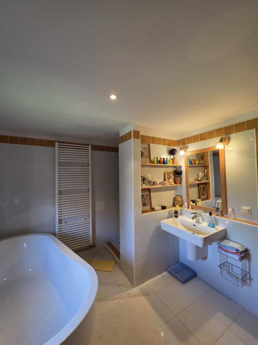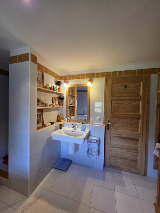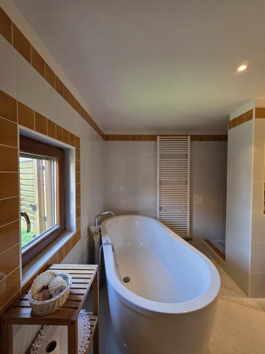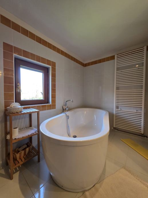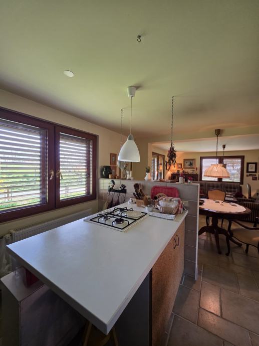U prizemlju se nalazi dnevni boravak, kuhinja s blagovaonicom i velika kupaonica.