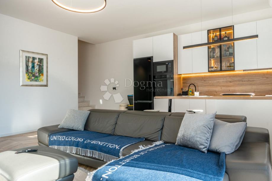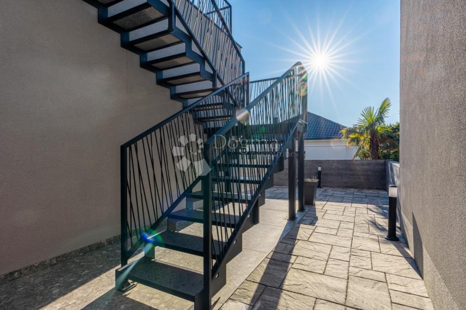 Krovna terasa: Najveća atrakcija ove nekretnine je prostrana krovna terasa površine cca 100 m². Ovaj prostor oduzima dah, a opremljen je ljetnom kuhinjom s pečenjarom i ljetnim dnevnim boravkom, što ga čini savršenim mjestom za uživanje tijekom ljetnih mjeseci. Gosti i članovi obitelji mogu uživati u druženjima na otvorenom ili jednostavno opuštati uz koktel dok gledaju zalazak sunca.