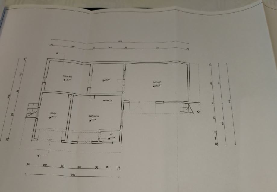 -prizemlja 117,24m2 (spavaća soba, kuhinja, blagovaona i dnevni boravak ˝open space˝, toalet, podrum/spremište i garaža)