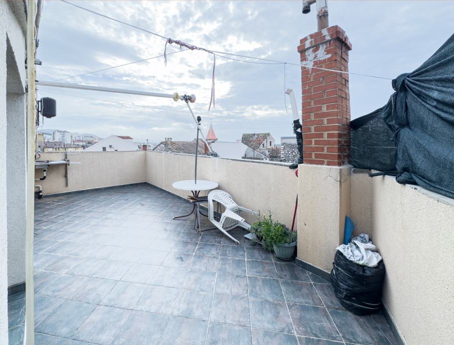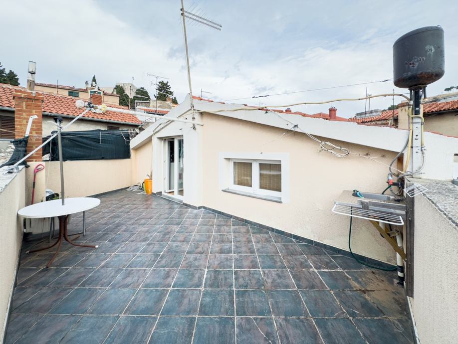 Kuća se nalazi u staroj gradskoj jezgri na poželjnoj lokaciji i udaljena je svega 300 m od mora i 200 m od samog centra. Sastoji se od prizemlja, dva kata i visokog potkrovlja s terasom. U prizemlju je konoba površine 72 m2 i poslovni prostor površine 18 m2 sa sanitarnim čvorom. Na prvom katu se nalazi dvosobni stan površine 72 m2 koji se sastoji od hodnika, kuhinje i blagovaone povezane s dnevnim boravkom. Unutarnjim stubištem dolazimo na drugi kat gdje je smješten dvosobni stan površine 72 m2 a koji se sastoji od dvije spavaće sobe, kuhinje i blagovaone povezane s dnevnim boravkom i kupaone. U visokom potkrovlju je veliki dnevni boravak površine 36m2 s izlazom na prostranu terasu površine 36m2 s koje se pruža pogled na stari dio grada.