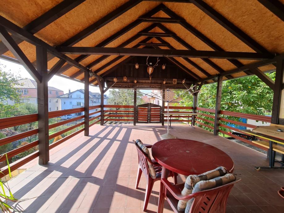 U dvorištu se nalazi garaža i spremište, te velika natkrivena terasa.