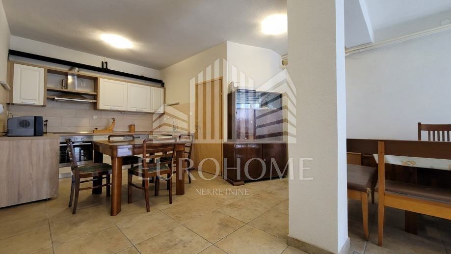 U podrumu je velika garaža koja može poslužiti i kao prostorija za druženje jer je napravljena kuhinja, a pored ulaznih vrata nalazi se i roštilj. U podrumu su još kotlovnica s kondezacijskim bojlerom, ostava, vinoteka i toalet.