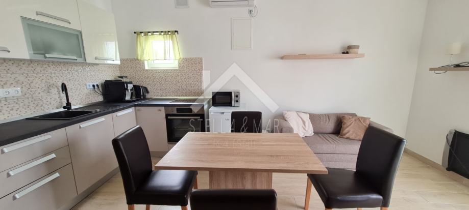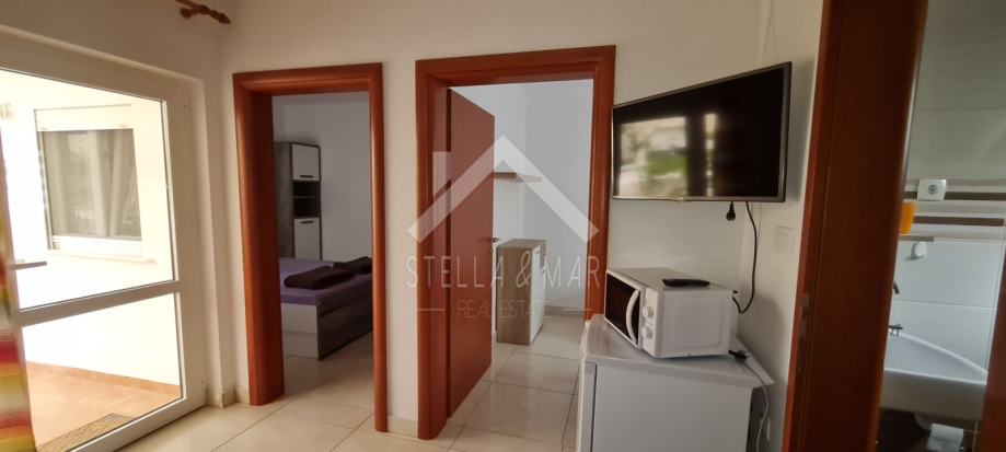 Vanjske stepenice vode na kat gdje su također nalaze dva dvosobna apartmana. Svi apartmani su u potpunosti opremljeni te idealni za turistički najam.