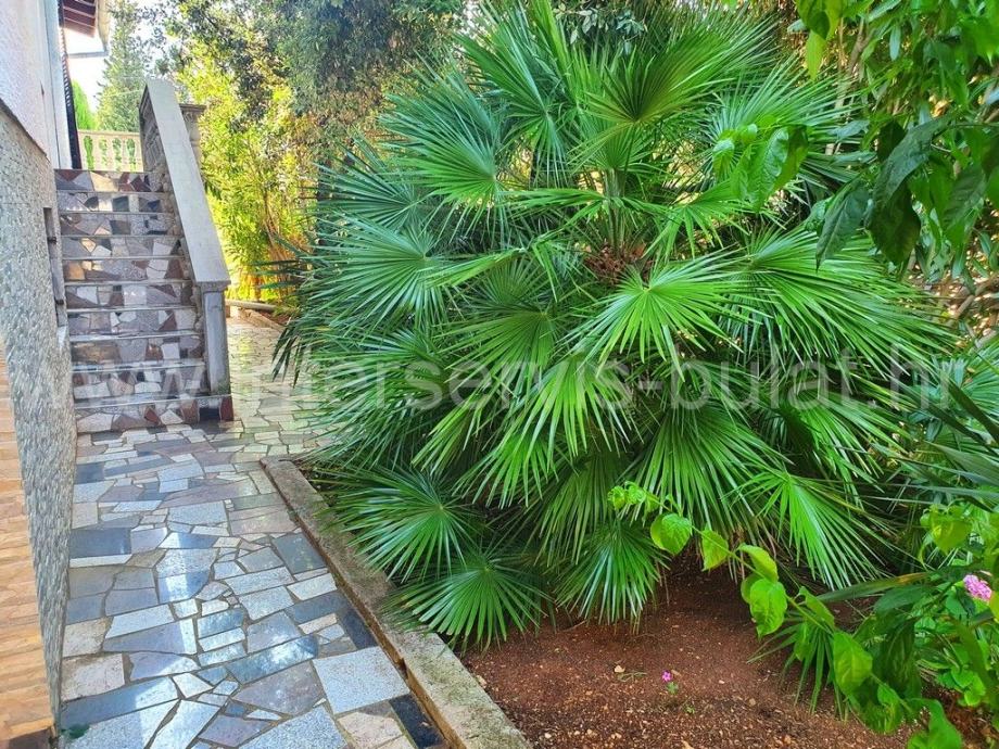 U visokom potkrovlju se nalazi prostrani stan sa tri spavaće sobe, kuhinjom sa blagovaonicom, kupaonicom i terasom sa prekrasnim pogledom na more.