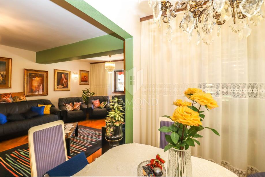 Ova prekrasna kuća sastoji se od suterena, prizemlja i prvog kata. U suterenu nalazi se višenamjenska prostorija koja može poslužiti kao igraonica, teretana, konoba ili dodatna stambena jedinica. U prizemlju kuće nalazi se prostrani dnevni boravak i blagovaonica s izlazom na vanjsku terasu, kuhinja te kupaonica. Na međukatu nalazi se jedna spavaća soba dok na prvom katu nalazi se druga kupaonica, tri spavaće sobe od kojih jedna ima izlaz na natkrivenu terasu od 20 m2 iz koje se proteže pogled na prekrasni vlastiti vrt, te na mansardi je smješteno praktično spremište. Ono što ostavlja bez daha je prekrasno uređeni vrt koji okružuje kuću, ono je prava oaza mira, uređen s ljubavlju i pažnjom prema detaljima. Raznovrsne mediteranske biljke, cvjetni grmovi i zelenilo stvaraju intiman ambijent, a tu i je kamin za roštiljanje i druženje. Osim navedenog kuća ima i garažu i dva vanjska parkirna mjesta.