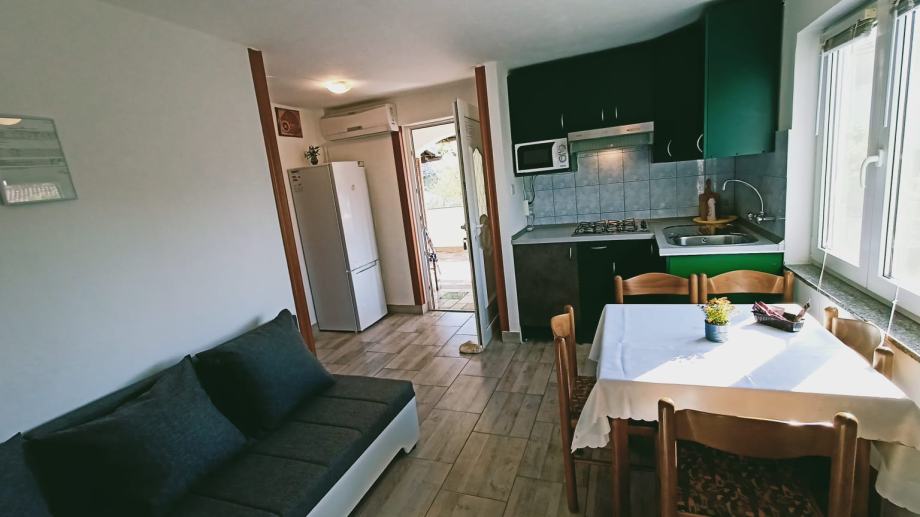 U prizemlju se nalaze dva apartmana: jednosobni i dvosobni, oba s velikim terasama idealnim za opuštanje.