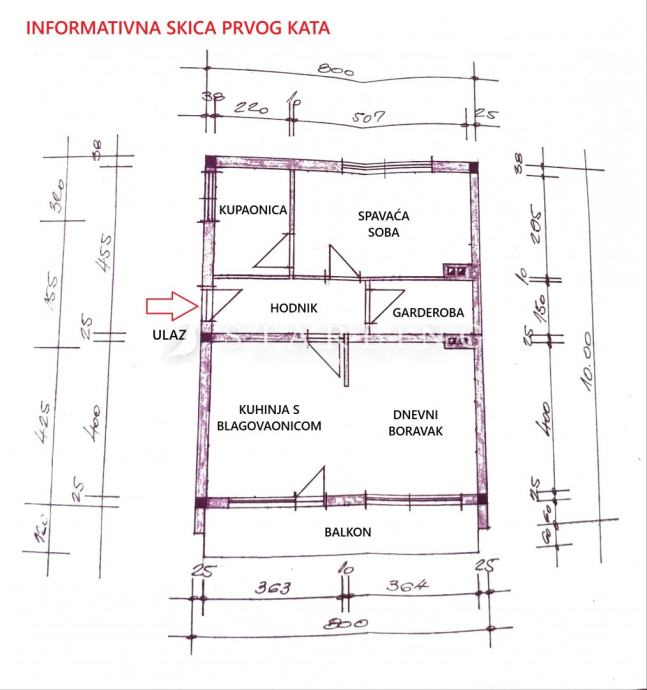 - PRVI KAT površine 70 m2: dnevni boravak s kuhinjom i blagovaonicom, spavaća soba, kupaonica s wc-om i balkon.