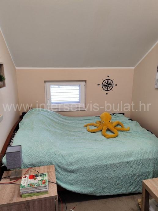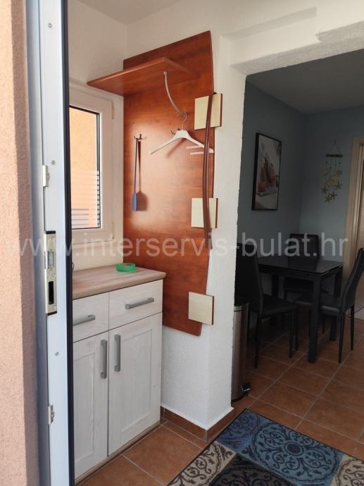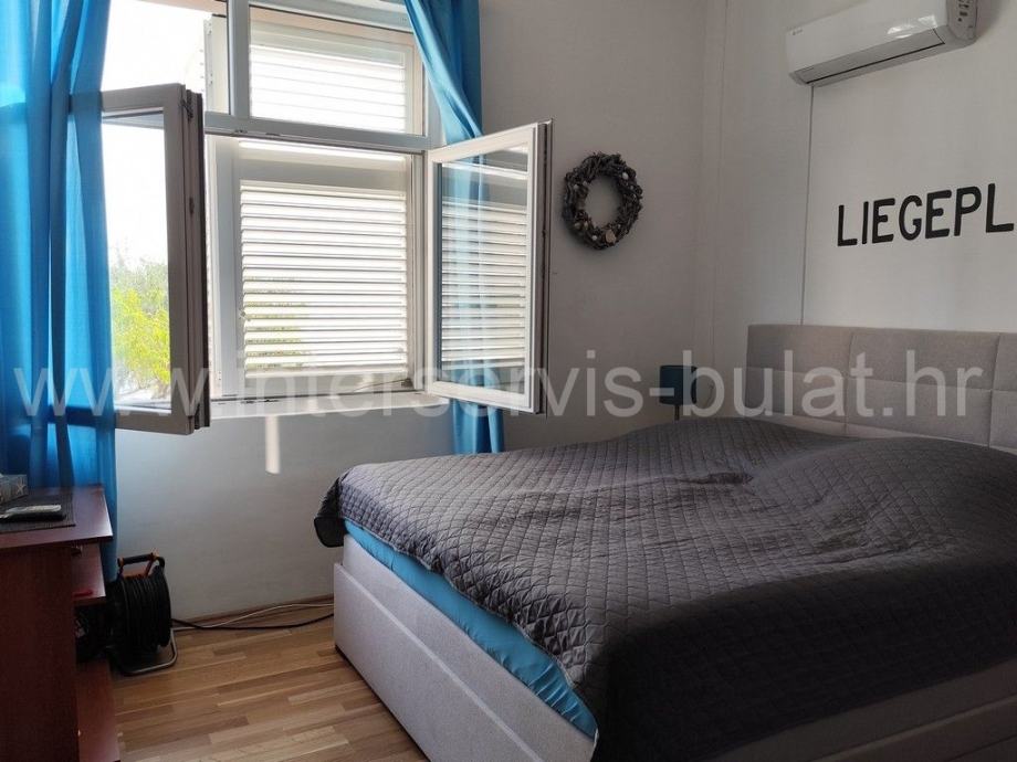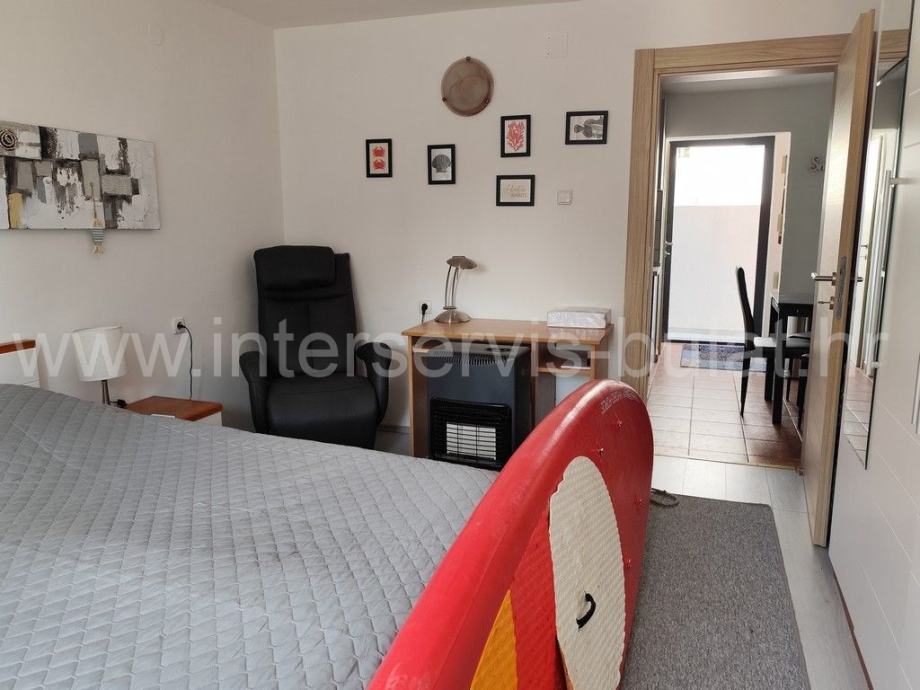 Okućnica je uređena i u cijelosti ograđena, parkirni prostor je popločan a dvorišna terasa s ležaljkama pruža savršen komfor obzirom da je plaža izravno ispred kuće. U tijeku je i izgradnja grijanog bazena dimenzija 8m x 4m. Kuća se nalazi u mirnom i tihom okruženju i idealna je nekretnina za odmor.