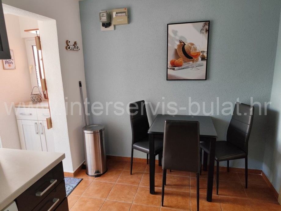 Prizemlje se sastoji od dva jednosobna apartmana od 33m2 s izlazom u dvorište. Poseban ulaz preko vanjskog stubišta vodi do stanova na gornjim etažama.