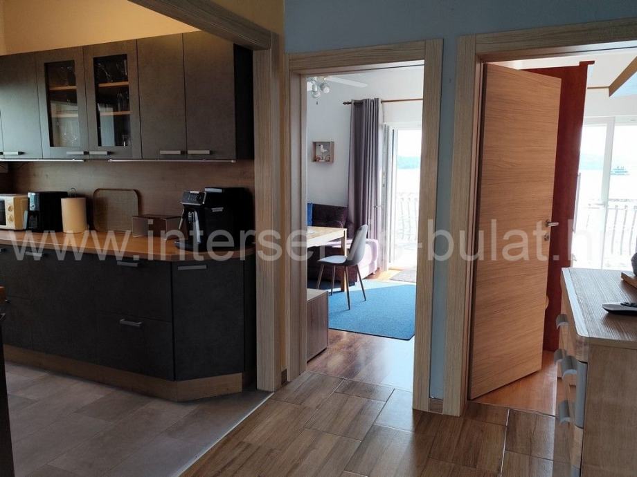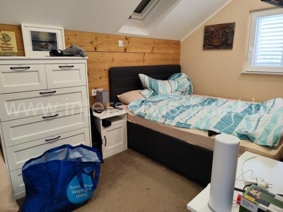 Na 1. katu nalazimo lijepo uređen 2-sobni stan od 65m2 s dva balkona i terasom. Stan u visokom potkrovlju ima 62m2 s dvije sobe, balkonom i terasom. Svi stanovi pružaju fantastičan, nesmetan pogled na jezero.