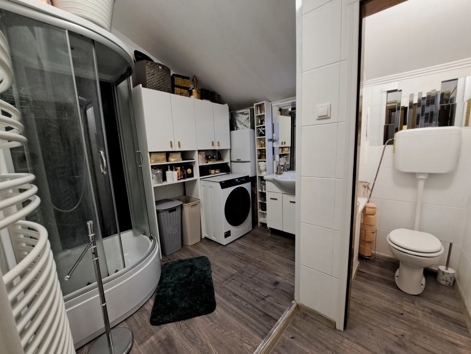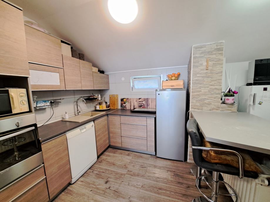 Na katu se nalaze 2 odvojena stana veličine 99 m2 i 80 m2 sa zasebbni ulazima.