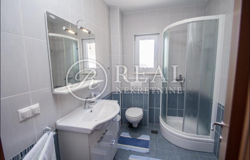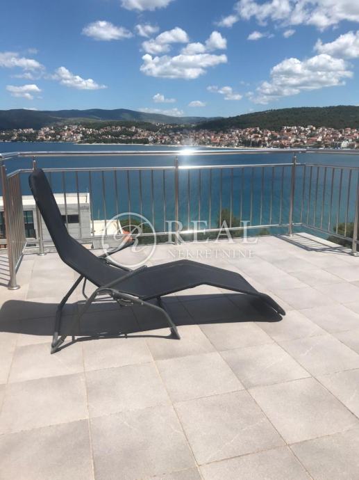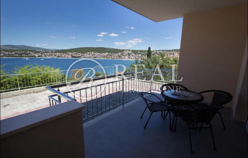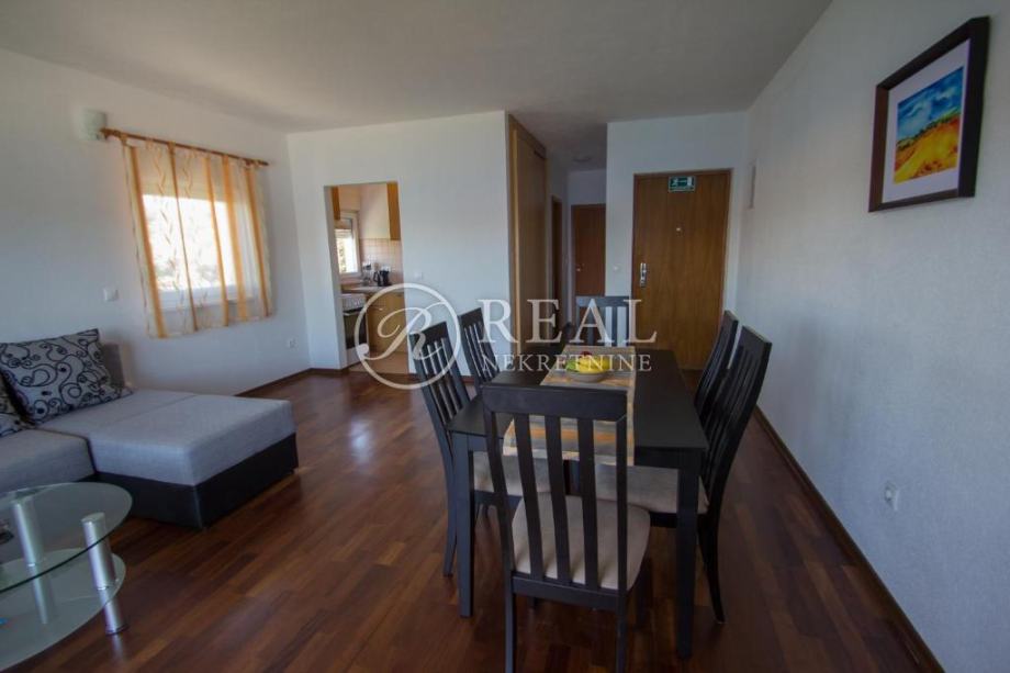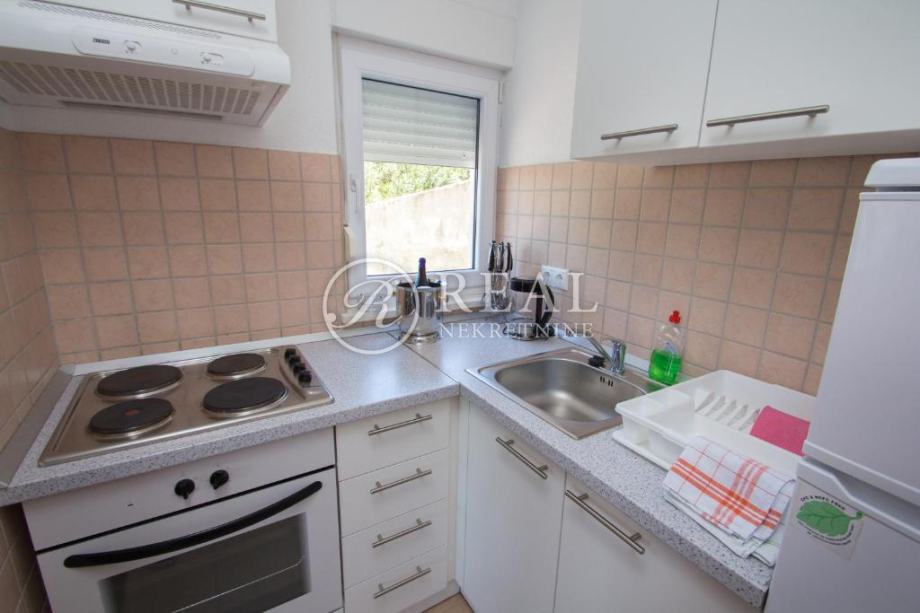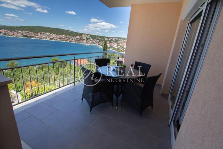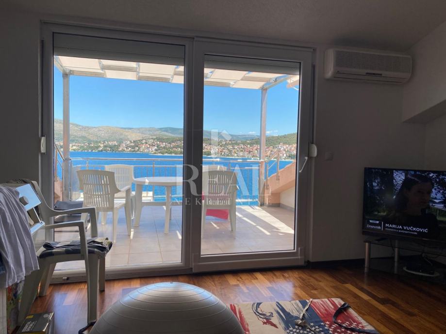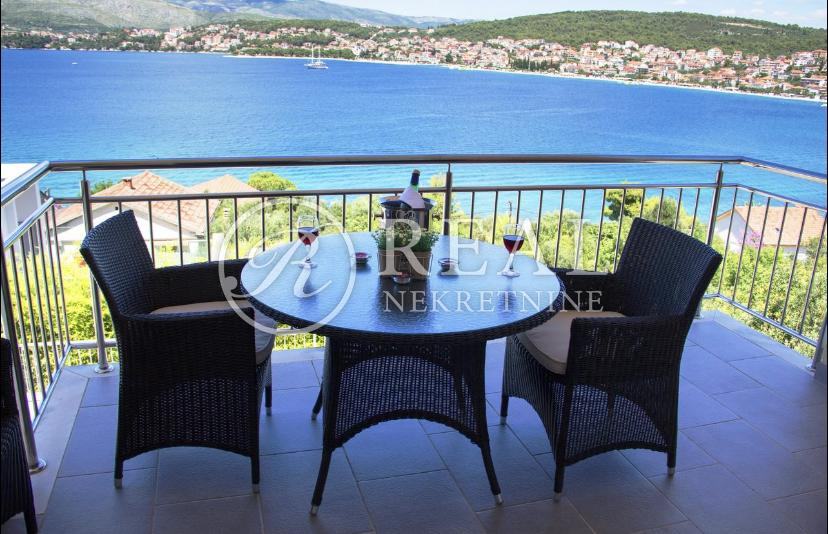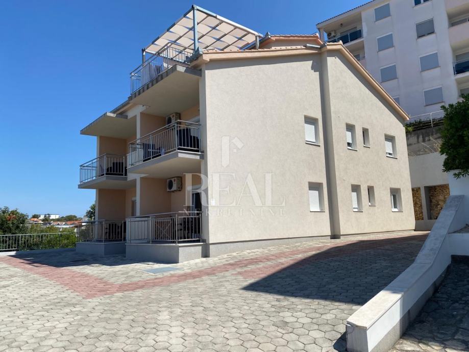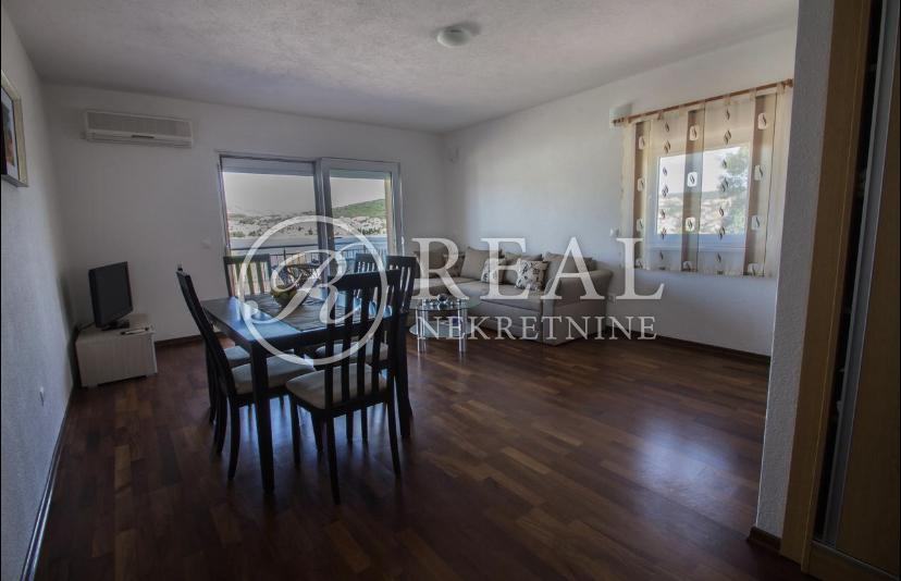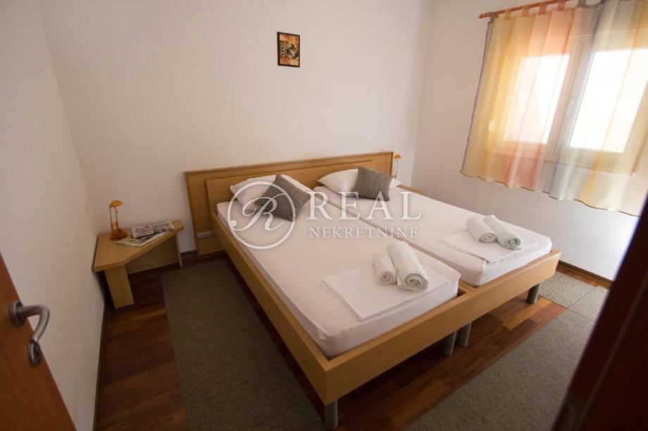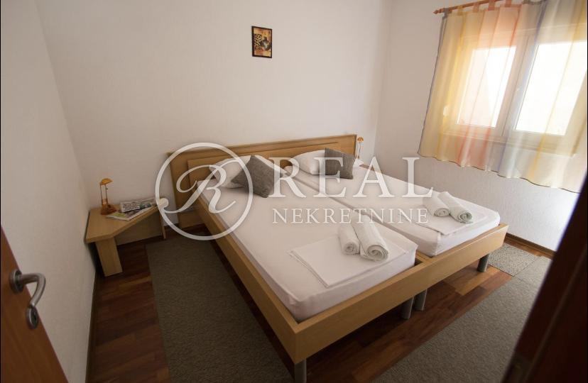 Kuća idealne pozicije udaljena 100m od plaže u mirnom dijelu kupališne zone bez prometa što garantira mir i odmor bez buke a s prekrasnim pogledom na more. Površina stambenog prostora je 362 m2 na kojoj se nalazi 4 apartmana svaki po 70 m2 koji se sastoje od kuhinje, dnevnog boravka sa balkonom ili terasom, spavaće sobe i kupaonice u prizemlju i katu te na drugom katu je apartman 80 m2 sa dvije spavaće sobe i velikom terasom. Na okućnici površine 300 m2 je parking za 6 vozila i zajednički vrt sa opremom i roštilj .Kuća je klimatizirani i prodaje se potpuno namještena.