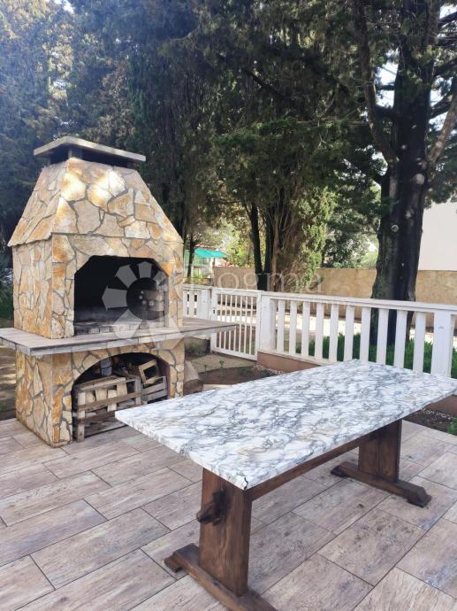 Uz kuću, dolazi i 200m2 predivne okućnice okružene autohtonim čempresima koji zaista pružaju izvanredan hlad koji se tokom ljetnih mjeseci itekako cijeni. U sklopu vrta i dvorišta imamo i kameni komin. Također, uz kuću dolazi i jedno parkirno mjesto te garažu koja je prenamjenjena u jedan od 6 gore navednih apartmana (jednosoban).