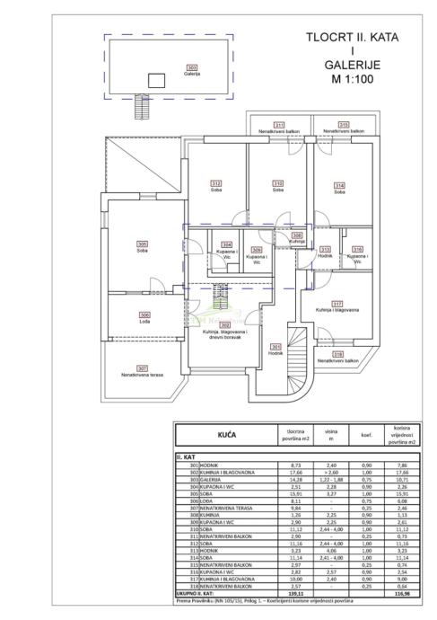 Kuća sa šest stambenih jedinica sastoji se od prizemlja; prvog te drugog kata sa galerijom.
