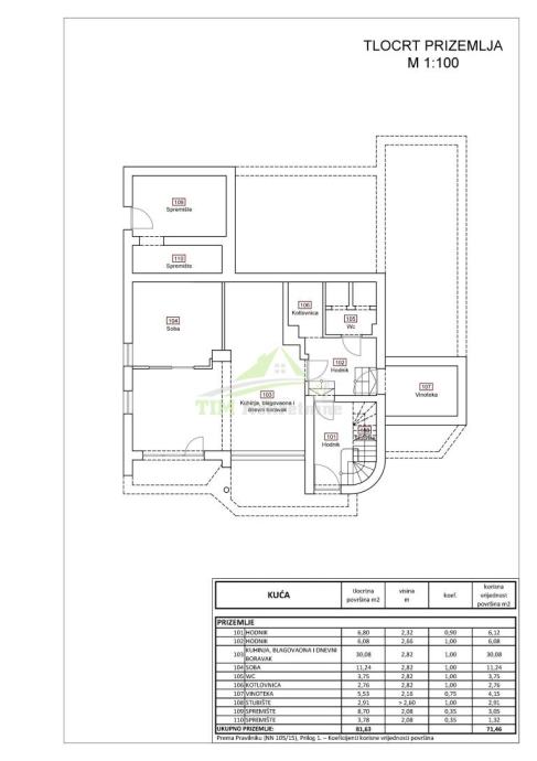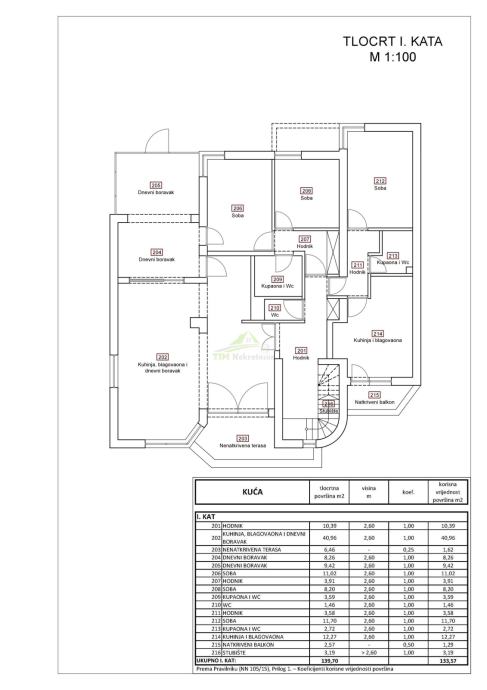 - kuhinja sa blagovaonom te dnevnim boravkom