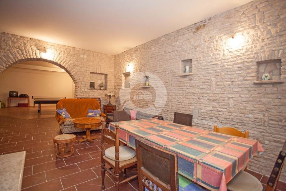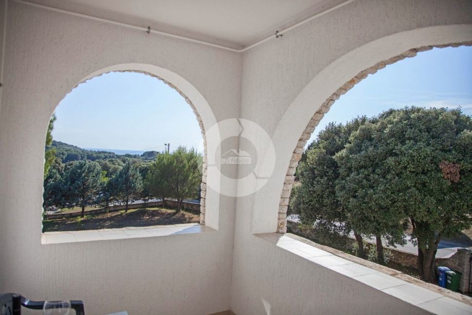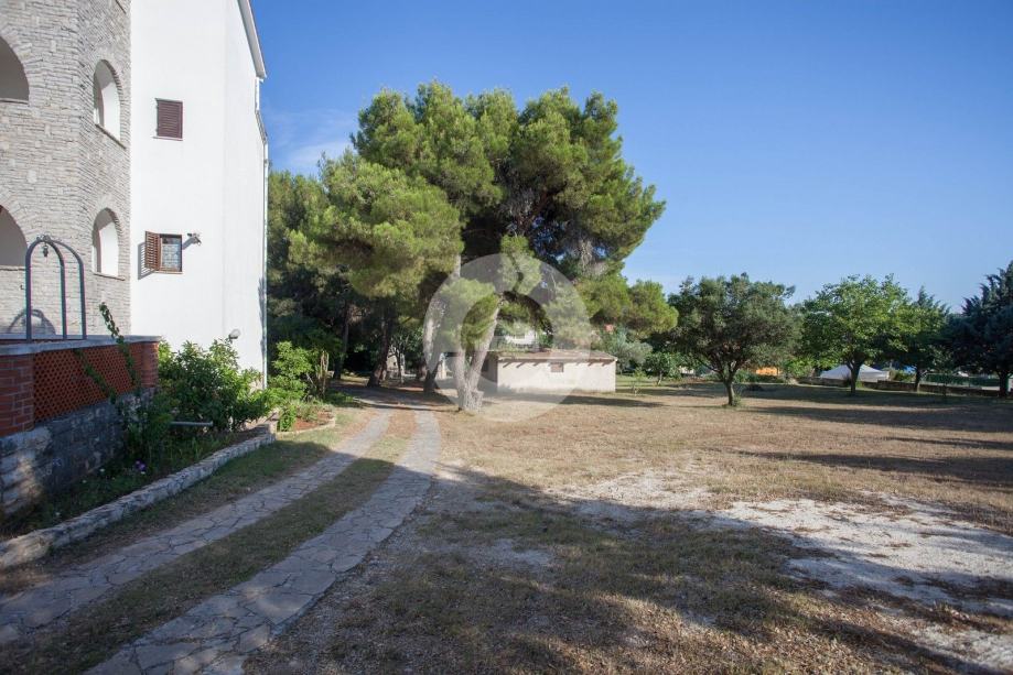 Samostojeća apartmanska kuća sa poslovnim prostorom (konobom), 7 apartmana, 1 sobom s kupatilom, te velikom okućnicom od 3200 m2 i pomoćnim objektom, veliki je potencijal za APART HOTEL. Nalazi se u jednom mirnom mjestu nedaleko od Pule, udaljenom od mora cca 400 m, te sa katova pruža prekrasan pogled na prirodu i more. U prizemlju kuće se nalazi: veliki poslovni prostor (konoba) sa kaminom, šankom, prostorom za druženje, sanitarnim čvorovima, spremištem, te se s druge strane prizemlja nalazi jednosobni stan. Vanjskim stepenicama se odlazi na prvi kat gdje se nalaze tri apartmana. Unutarnjim stubištem se odlazi na drugi kat gdje se nalaze dva apartmana, dok se u potkrovlju nalazi jedan veliki stan. Svi stanovi imaju prekrasne velike terase sa pogledom na prirodu i more. U vrtu se nalaze veliki borovi, zelena površina, pomoćna kućica od 25 m2, mjesta za parking te potencijalnog prostora za veliki bazen i sunčalište. Grijanje je regulirano klimom i centralnim sustavom na plin. Kuća ima ukupno tri dimnjaka tako da je omogućeno i grijanje na drva/pelete. Stolarija je kombinacija (drvena ili PVC). Obzirom na veliki smještajni kapacitet i prostranu okućnicu objekta, te lokaciju koja se nalazi nedaleko od mora i uređenih plaža, nekretnina predstavlja veliki potencijal za razvoj poslovanja u iznajmljivanje apartmana sa restoranom (konobom) na bazi pansiona ili polupansiona.