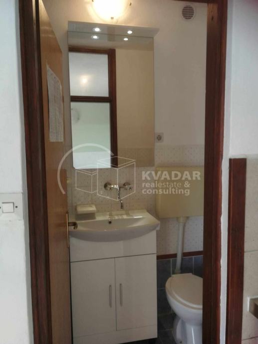 U prizemlju se nalazi trosobni stan ukupne kvadrature 90m2 koji izlazi na prostranu terasu od 20m2. Sa terase se ulazi u konobu i strojarnica s hidroforom. Voda se grije pomoću solarnih panela