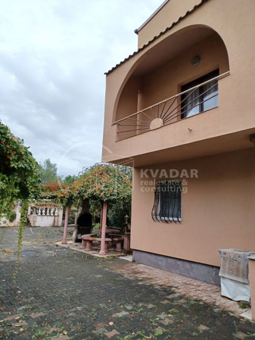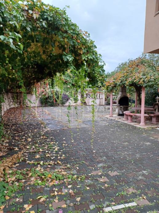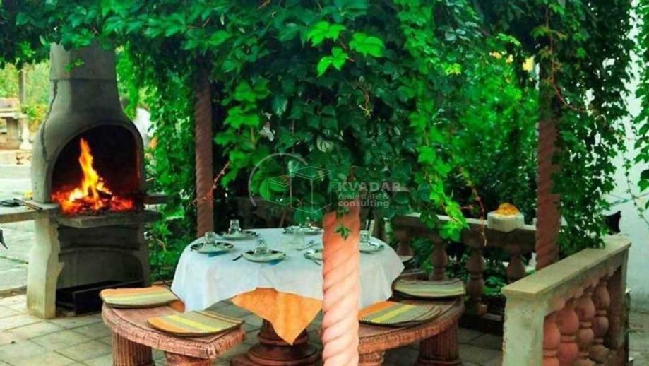 S prednje strane kuće nalazi se mali vrt, dok se sa stražnje nalazi veliki parking za 8 osobnih vozila, 3 sjenice sa zidanim roštiljom okružene uređenim vrtom . Ukupna površina okućnice iznosi oko 450 m2.
