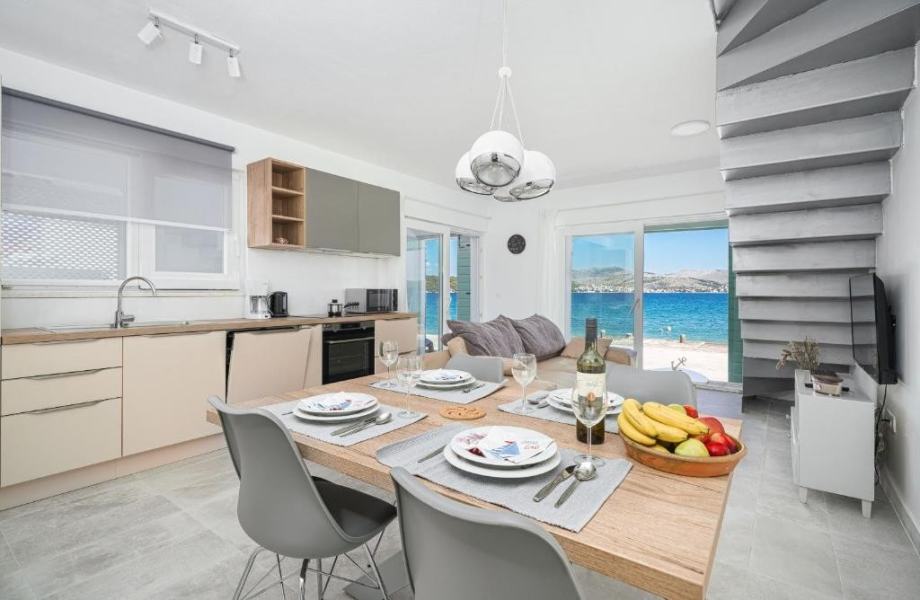 Na prodaju je prekrasna kuća na otoku Krapnju, koja se nalazi uz samu obalu - tik do mora. Ova kuća s 70m2 prostire se na tri kata, nudeći savršen spoj modernog komfora i tradicionalnog šarma.