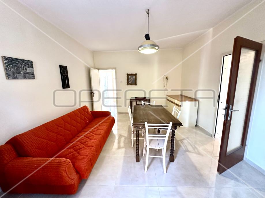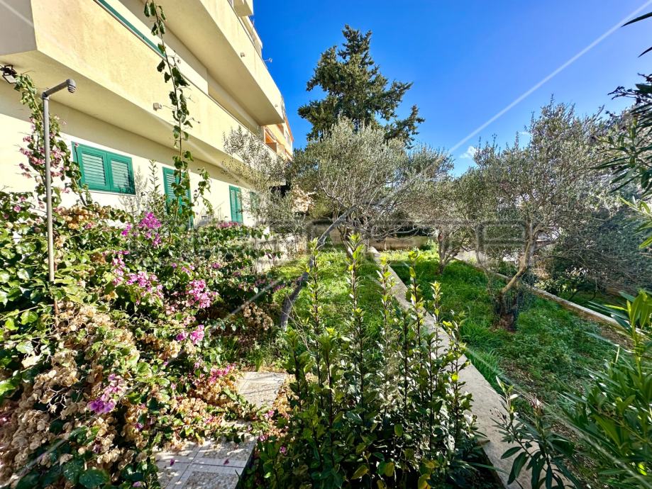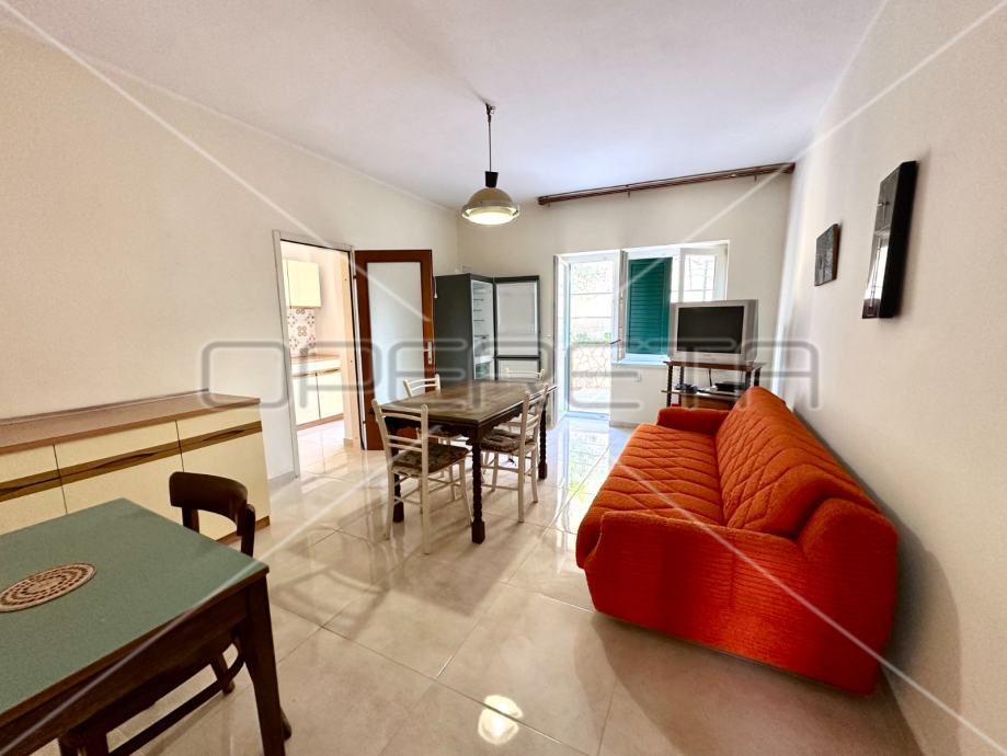 Prizemni stan ove kuće nudi udobnost, praktičnost i povezanost s vanjskim prostorom. Osim ulaza u dom, nalazi se dnevni boravak s pogledom na more i pristupom prostranoj terasi.