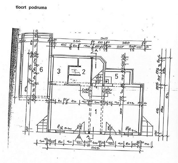 1) Podrum NKP 54,45 m² sastoji se od 2 prostorije, tuša, 2 sanitarna čvora, hodnika, ulaza i opločenog prevrta.