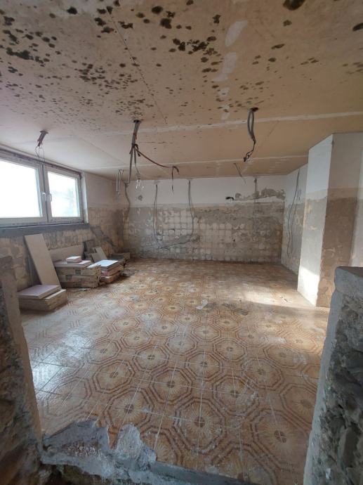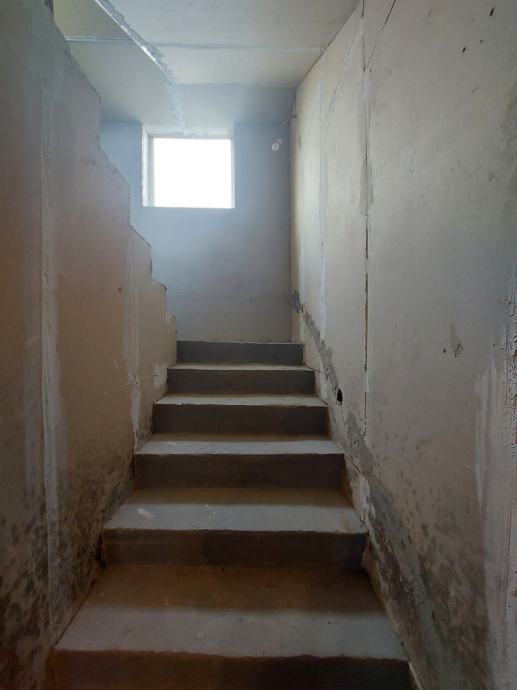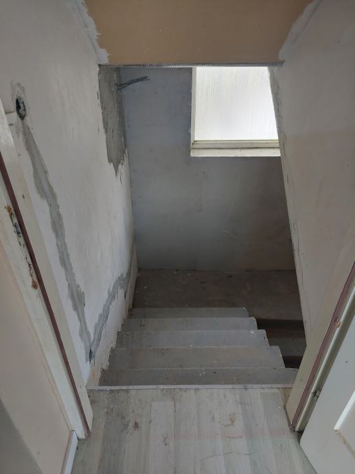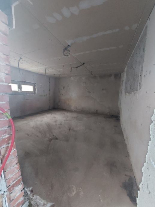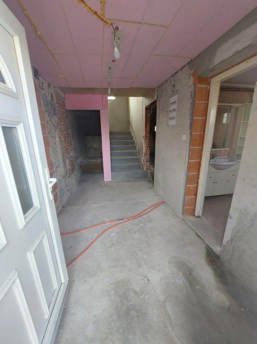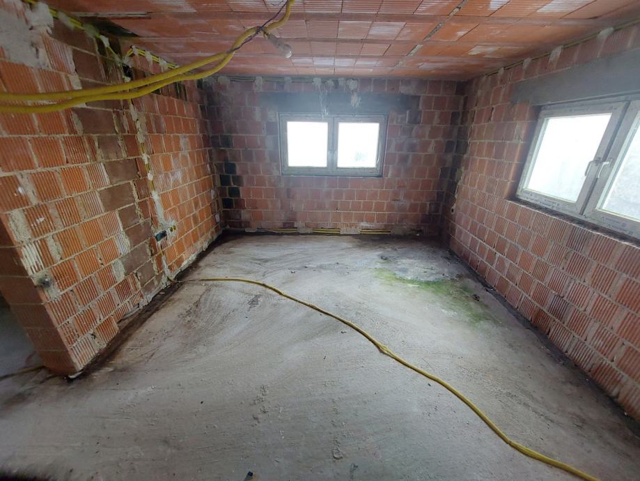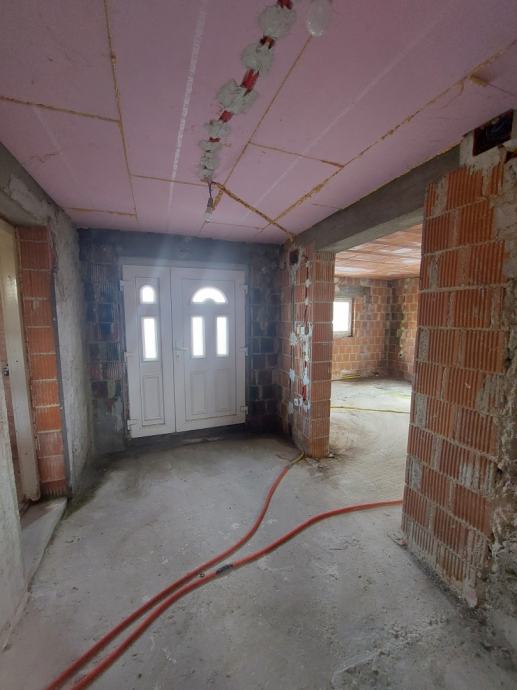 Prizemlje kuće je nedovršeno i neuređeno, dok je kat relativno uređen i priveden stambenoj namjeni.