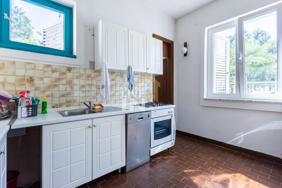 Parcela površine 1150m2posjeduje iznimnu privatnost jer prolaznici nemaju prolaz sa niti jedne strane osim stražnje (kolne), a opet postoji vlastita pješačka staza od parcele do mora. Pogled gleda na zaljev Kijac. Jedan od najmirnijih dijelova Njivica uz svu infrastrukturu (pristupna cesta sa uređenim vanjskim besplatnim parkingom, sportski centar itd). Okućnica je iznimno prostrana i uređena u kamenim terasama. Kuća je u potpunoj funkciji, ali preporučuje se renovacija obzirom na vrijednost položaja. Projekt obnove objekta je pripremljen te je u fazi ishođenja potrebnih dozvola koje se očekuju u kratkom roku. Projekt originalnog objekta potpisuje poznati arhitekt i od iznimne je vrijednosti ne samo za taj objekt već i za objekte u okruženju. Budući da je parcela sa pripadajućom kućom smještena na iznimno atraktivnom mjestu, potpuno okružena netaknutom prirodom ova ponuda predstavlja jako kvalitetnu nekretninu za odmor sa iznimnim potencijalom za daljnji razvoj. Ova lokacija je iznimno dobro prometno povezana sa drugim mjestima otoka na kojima se nude atraktivni sadržaji.