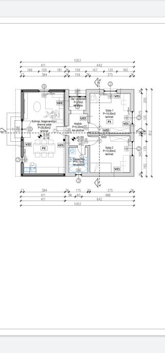 • Prizemlje: dnevni boravak, blagovaonica i kuhinja s izlazom na natkrivenu terasu, dvije spavaće sobe, kupaonica