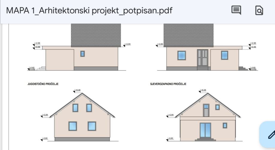 • Površina kuće: ~130 m² (prizemlje 85 m² + kat 45 m²)