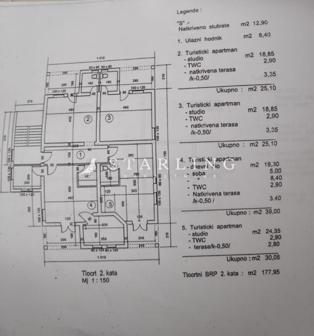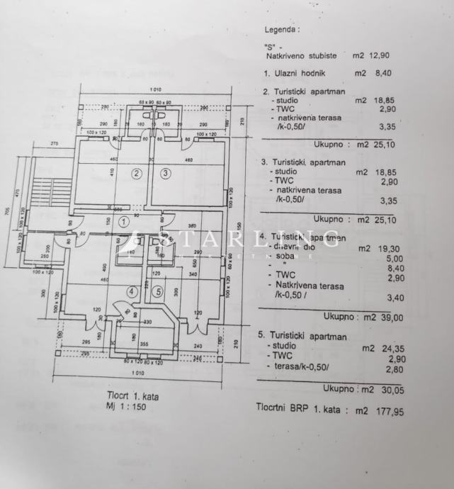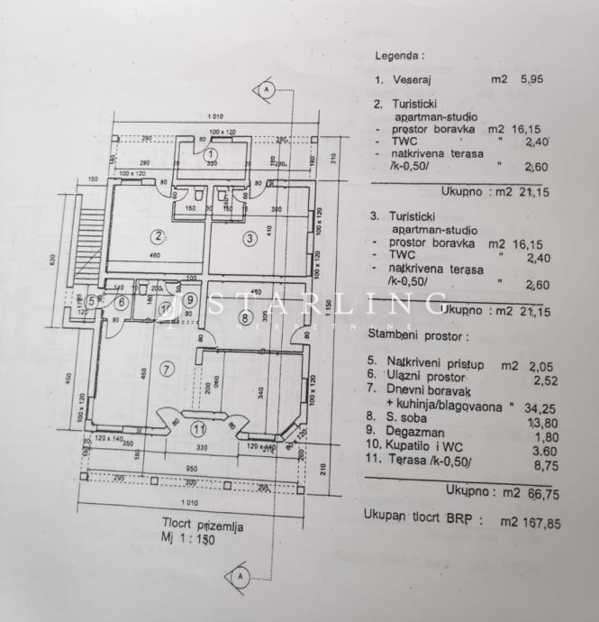 Prizemlje se sastoji od 2 apartmana i stana od 66 m2.