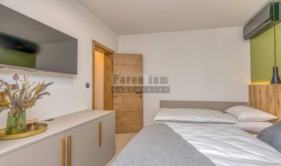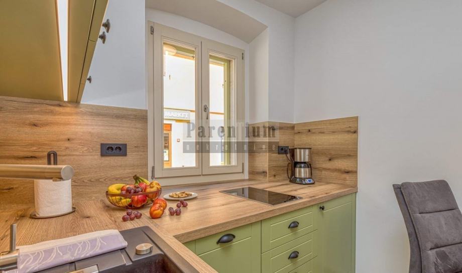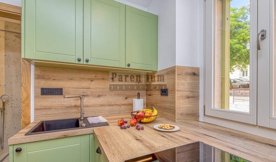 Apartman u prizemlju, ukupne površine 28,30 kvadrata sastoji se od kuhinje, blagovaonice, hodnika s ugradbenim ormarom, prostrane spavaće sobe i kupaonice s walk-in tušom.