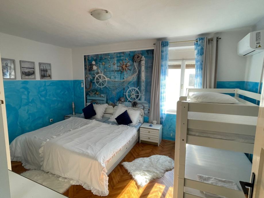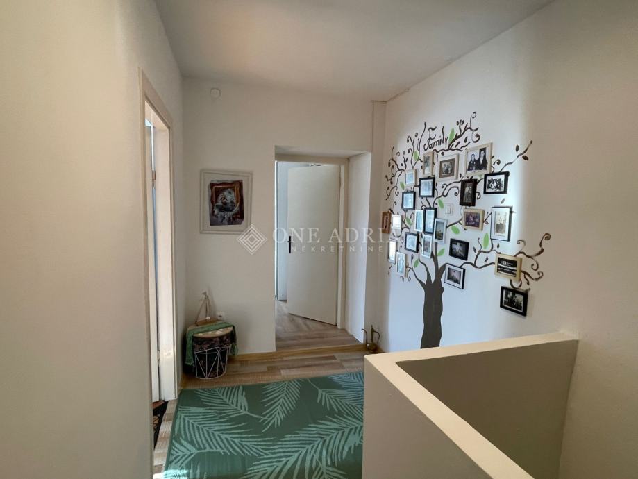 Na donjoj etaži kuće nalaze se dnevni boravak s kaminom, kuhinja s blagovaonicom, kupaonica te ostava. Gornja etaža sastoji se od dvije spavaće sobe s pogledom na more, od kojih jedna ima izlaz na balkon. Kuća raspolaže s dvije kupaonice s WC-om te dodatna dva WC-a.