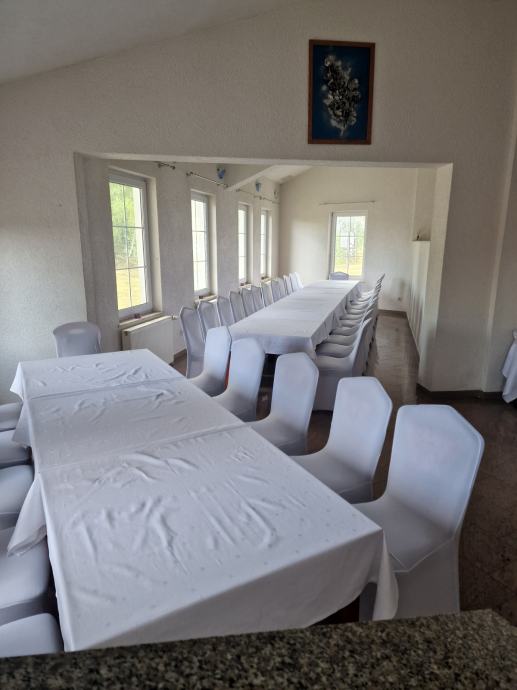 U poslovnom prostoru u kojem je nekad radio restoran sa salom kapaciteta za 90 ljudi, nalazi se namještena kuhinja, skladište za kuhinju, 3 prostorije za skladište, wc muški/ženski za goste, wc i tuš za osoblje. Restoran ima grijanje na plin.
