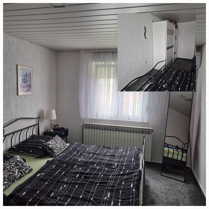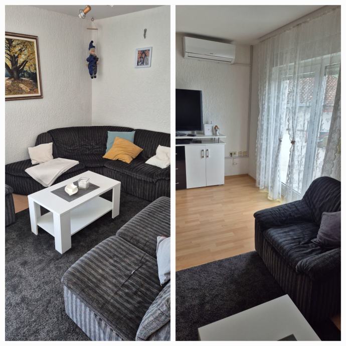 Stan koji se nalazi na prvom katu objekta ima odvojeni ulaz, potpuno je namješten i klimatiziran te ima grijanje na plin. Stan ima 3 spavaće sobe, jednu kupaonicu s wc-om, i dva zasebna wc-a., boravak i kuhinju. U sklopu stana nalazi i podrum, te stan iz dnevnog boravka ima izlaz na terasu/balkonu.