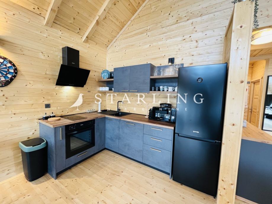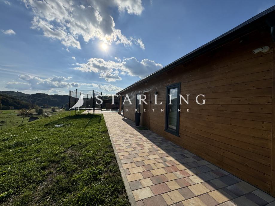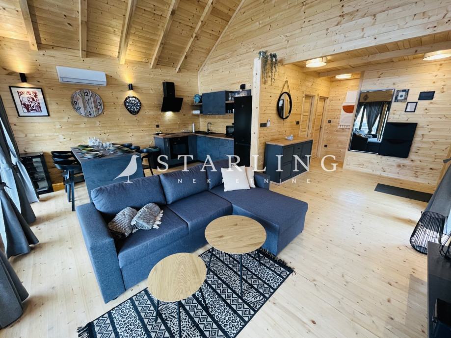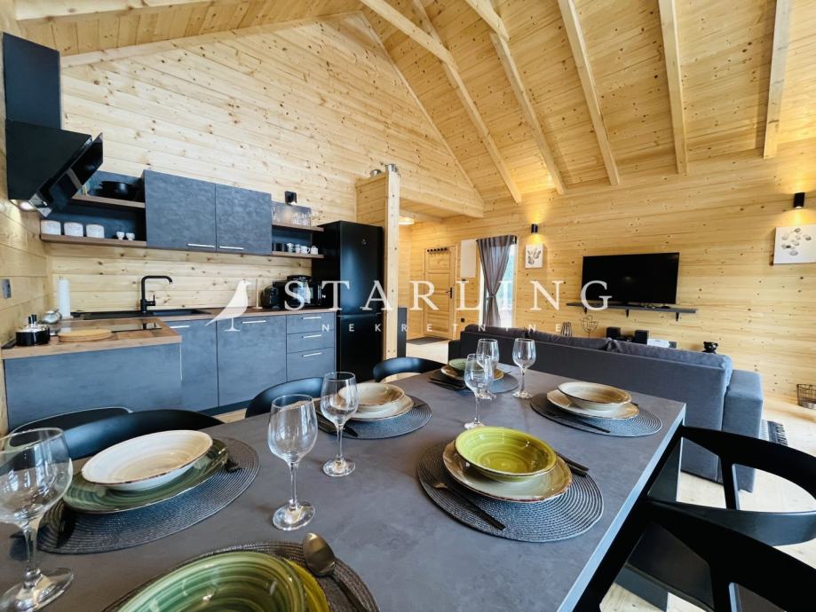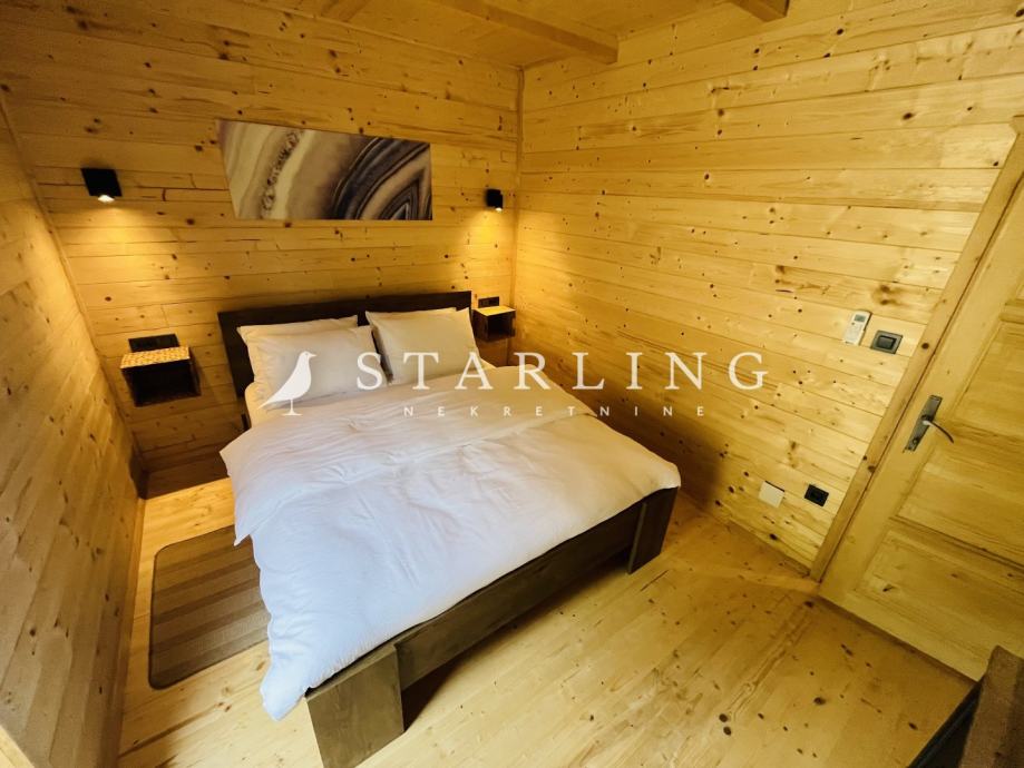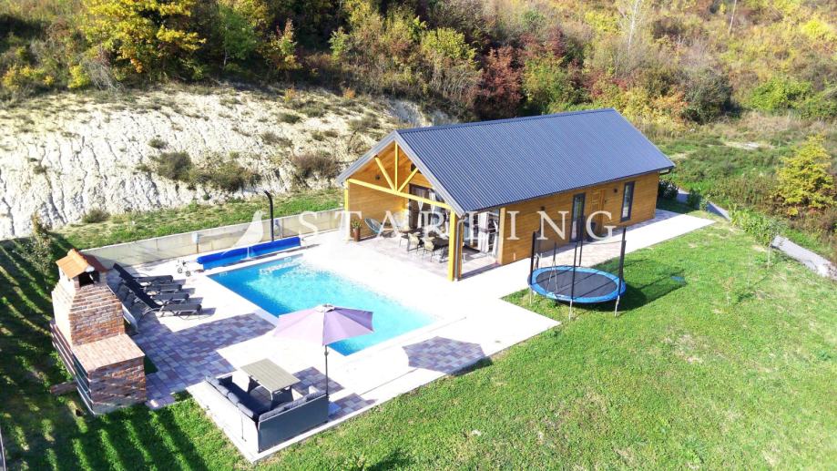 Kuća se sastoji od dnevnog boravka s blagovaonicom, dvije spavaće sobe, kupaonice, prostrane terase, te okućnice s bazenom, roštiljem i vanjskim tušem.