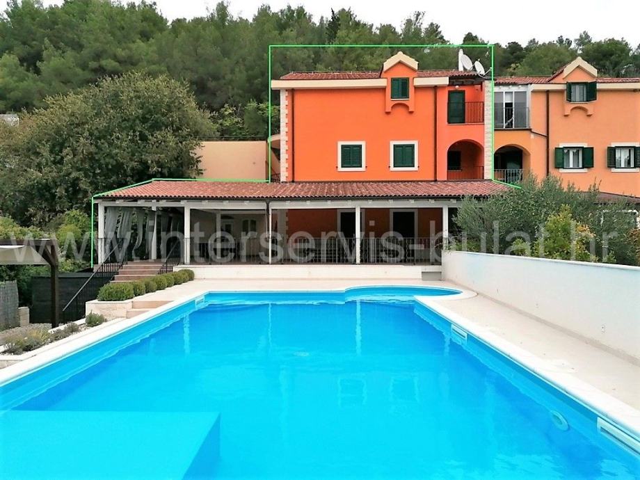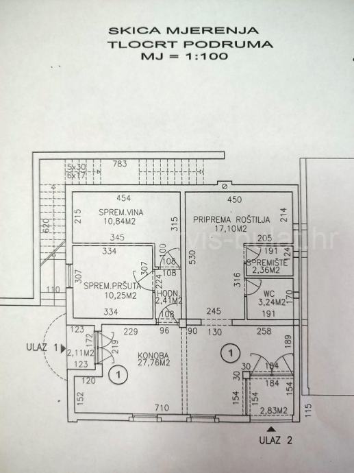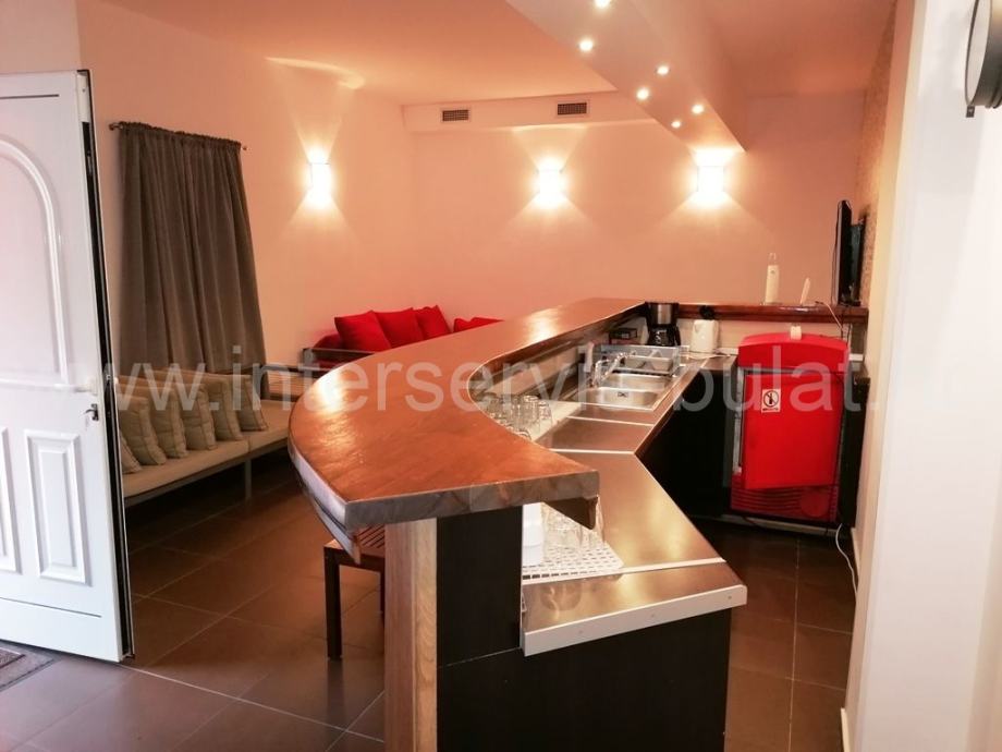 U suterenu je poslovni prostor/ konoba od 77,66m2 koji se sastoji od više zasebnih prostorija - kuhinje 27m2, spremišta vina 11m2, spremišta pršuta 11m2, pripreme roštilja 18m2, hodnika, saune, dvije tuš kabine i WC-a. Ispred je velika natkrivena terasa s pogledom na bazen.