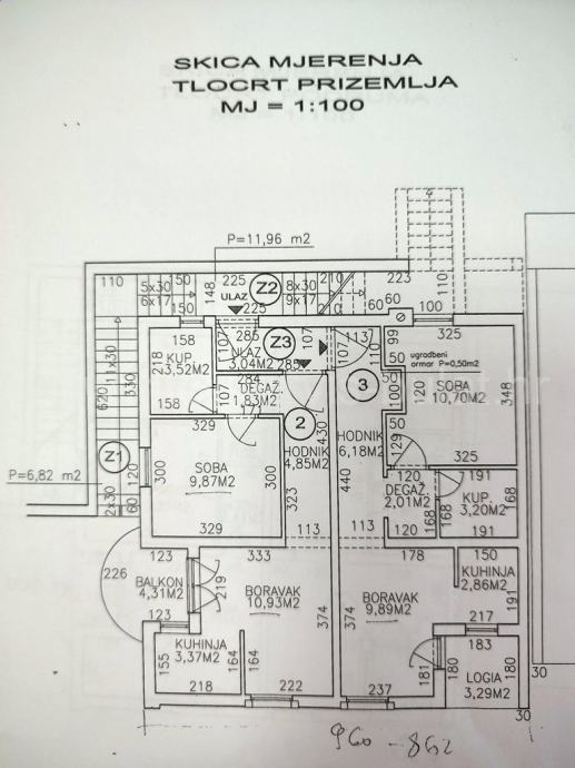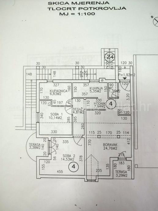 Prizemlje raspolaže s dva jednosobna apartmana po 38m2 s balkonima, oba uređena i useljiva. U potkrovlju se nalazi useljiv stan od 81,32m2 s dvije spavaće sobe i dva balkona.