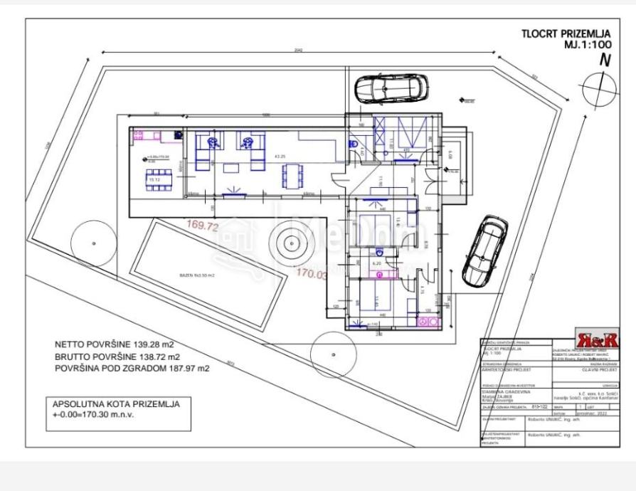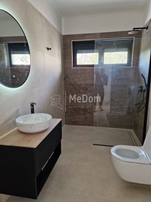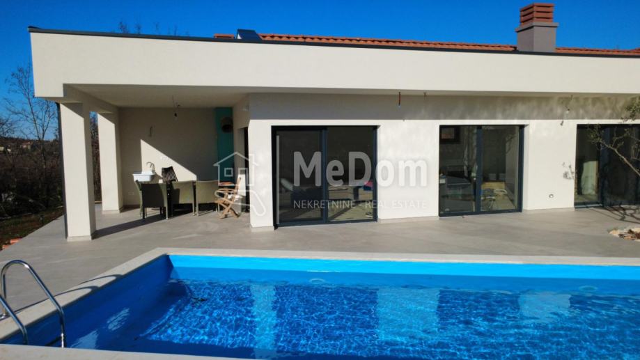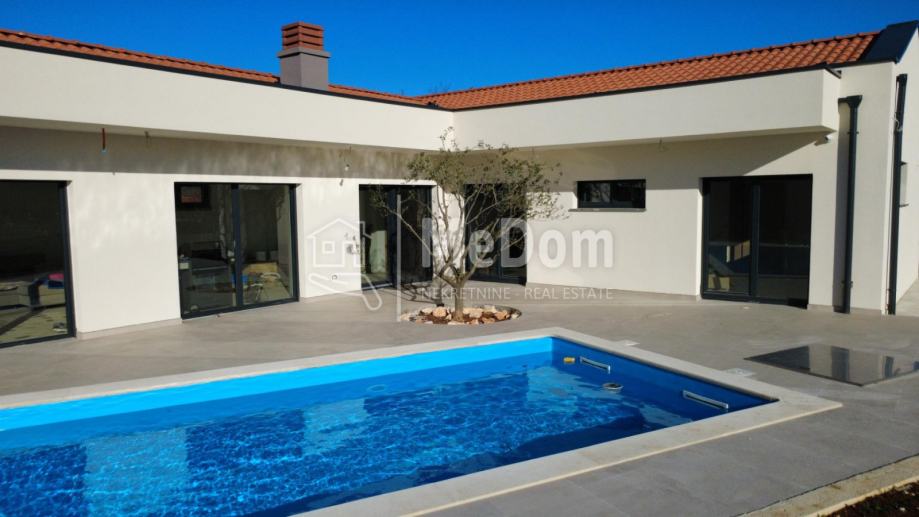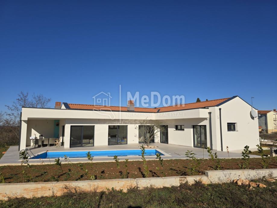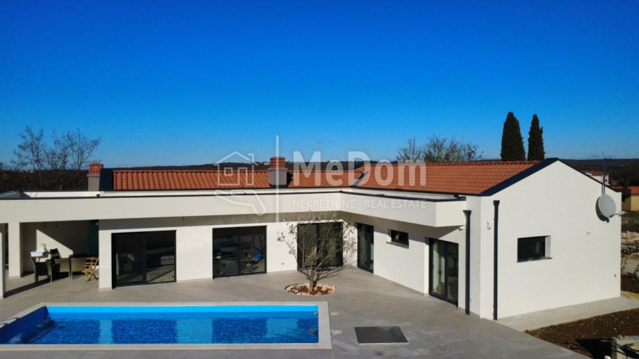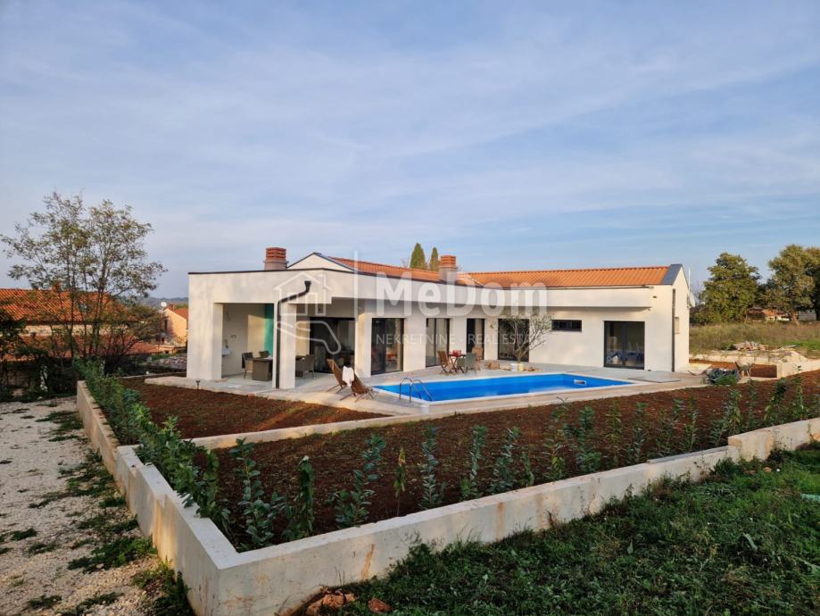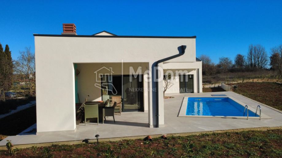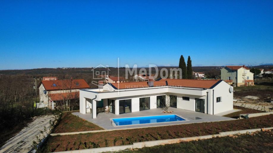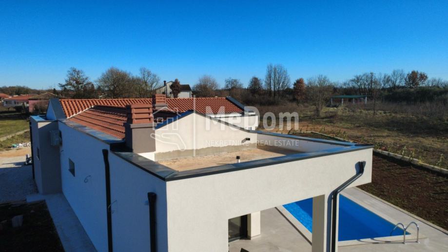 Prodajemo kuću s bazenom u zapadnoj Istri, stambene površine od 138 m2. Kuća se sastoji od hodnika, dnevnog boravka sa kuhinjom i blagavaonicom, tri spavaće sobe, dvije kupaonice, ostave, natkrivene terase i nenatkrivene terase uz bazen površine 32m2. Kuća je pri završetku uređenja. Izlaz na bazen je iz dnevnog boravka i kuhinje. Grijanje i hlađenje riješeno je sa dizalicom topline. Predviđeno je i podno grijanje. Kuća se prodaje sa kompletno završenim unutrašnjim i vanjskim uređenjem, nenamještena. Kuća je smještena na mirnoj lokaciji okružena zelenilom, u blizini svih bitnih sadržaja za život. Nalazi se u blizini Rovinja, Limskog kanala, autoceste, vrhunskih ribljih restorana, vinarija i biciklističkih staza. Kuća je interesantna i za odmor i stanovanje a tako i za najam u turističke svrhe. Blizina svih sadržaja, atraktivna lokacija, interesantan projekat kuće, jamči veliku popunjenost tijekom cijele godine.