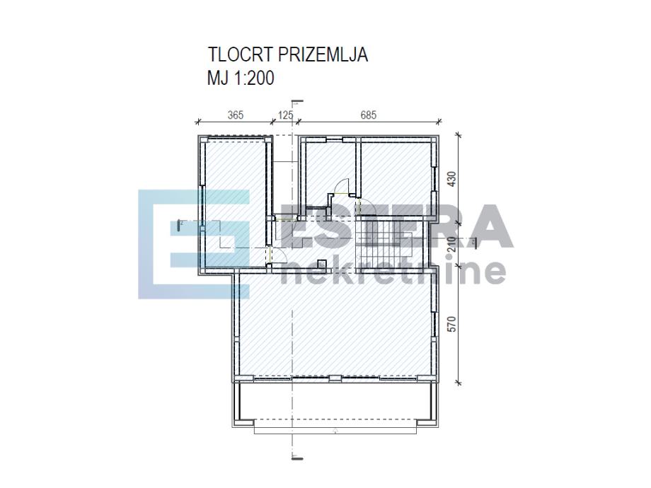 U prizemlju se nalazi ulaz, hodnik, kupaonica, spavaća soba, kuhinja, blagavaona, dnevni boravak i lođa.