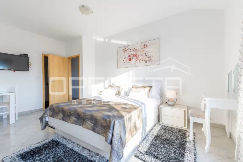 Nekretnina se proteže na tri etaže i osmišljena je tako da pruža maksimalnu funkcionalnost i udobnost. U prizemlju se nalaze dva manja, potpuno opremljena apartmana, svaki s jednom spavaćom sobom, kupaonicom te dnevnim boravkom s kuhinjom i blagovaonicom. Dodatnu vrijednost prizemlja čini zasebna igraonica opremljena stolom za biljar, pikadom, konzolom za videoigre i ostalim sadržajima za zabavu, što ovu kuću čini posebno atraktivnom za obitelji i goste u turističkom najmu.