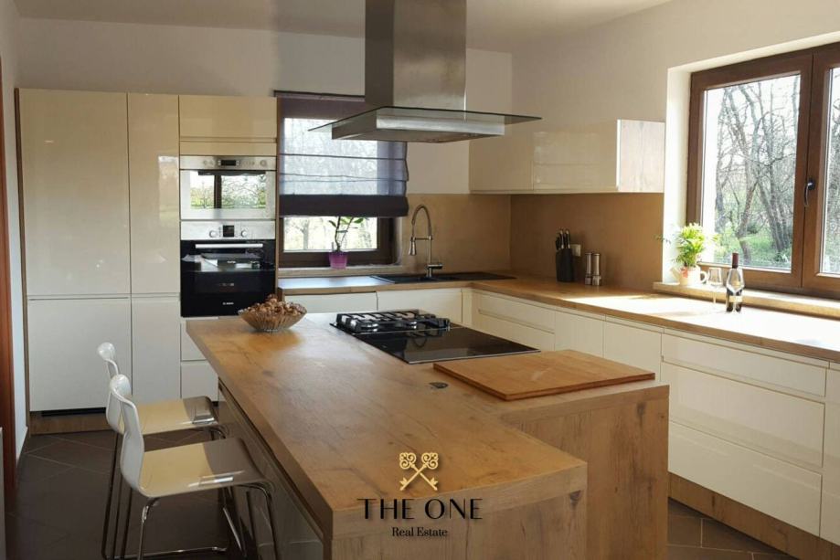 Kuća ima 380m2 stambenog prostora na dvije etaže, nudi četiri prostrane spavaće sobe, pet kupaonica te dodatni toalet za goste. Moderna kuhinja i blagovaonica stvaraju savršeno okruženje za uživanje u gurmanskim specijalitetima, dok lijepo uređeni dnevni boravak pruža prostor za opuštanje i druženje.