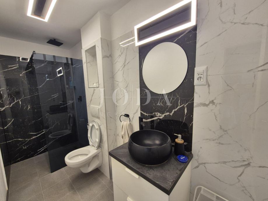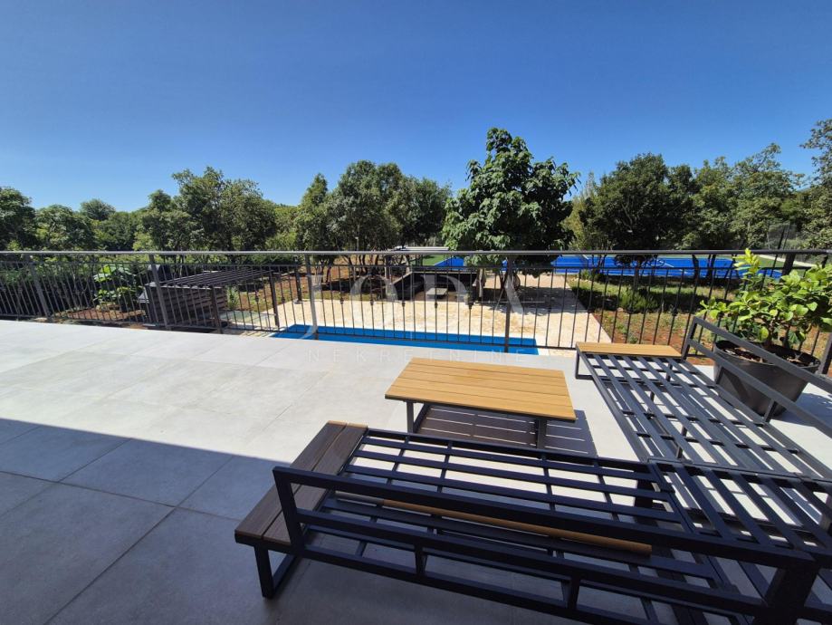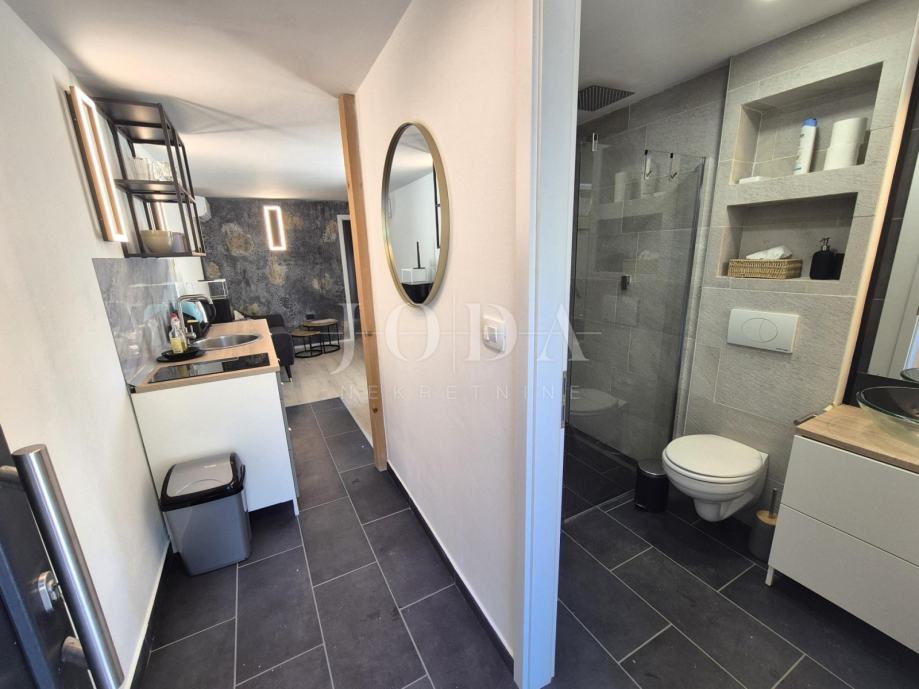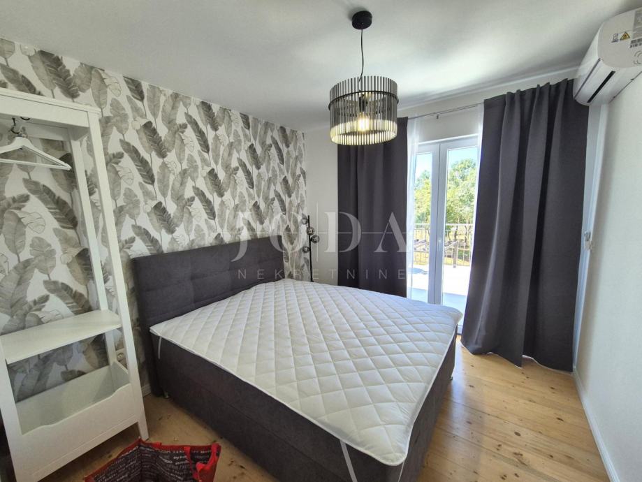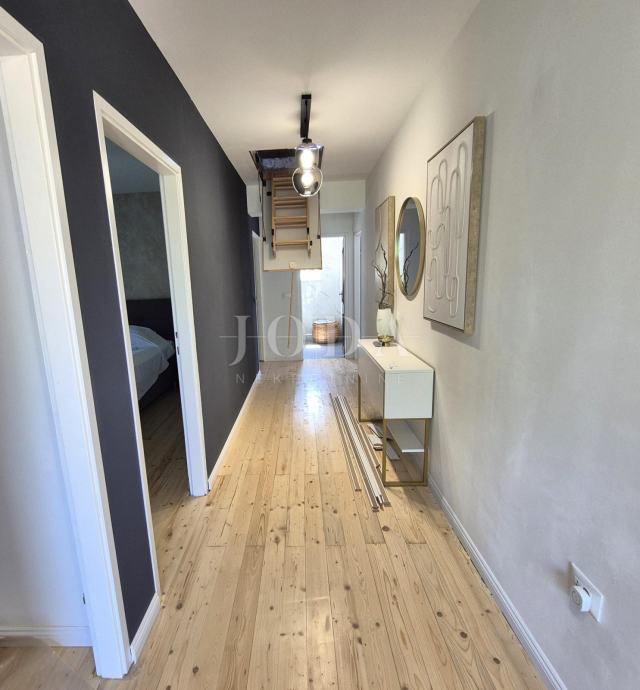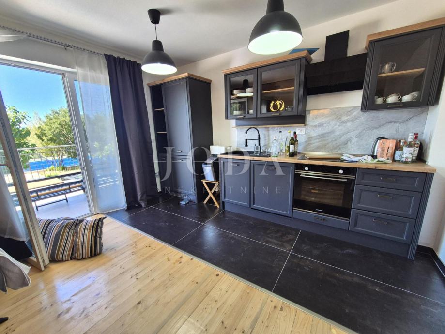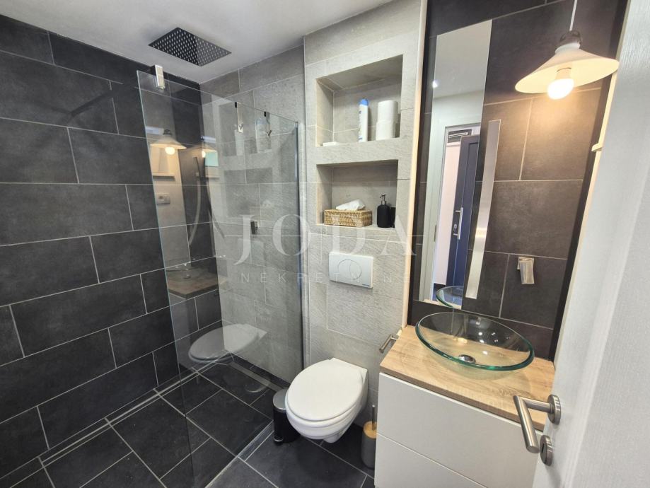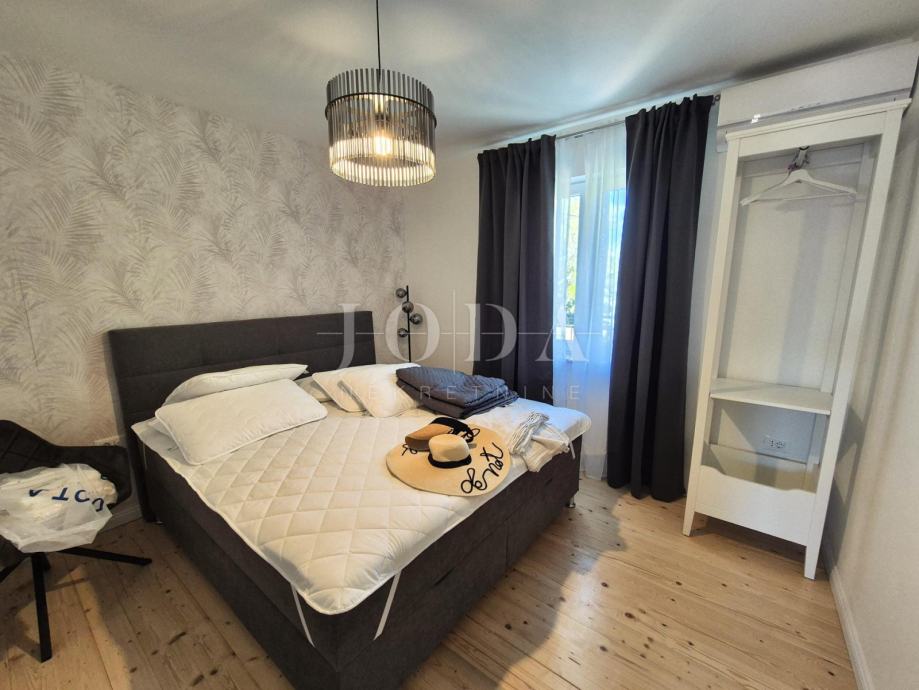 Kuća je kompletno adaptirana i trenutno je u završnoj fazi uređenja. Podijeljena je na podrum, prizemlje, kat i potkrovlje i ima brutto površinu 350 m2. Sastoji se od podruma i tri odvojene stambene jedinice. U prizemlju se nalazi jedan jednosobni apartman, jedan dvosobni apartman i prostorija sa saunom i teretanom. Na prvom katu se nalazi apartman koji ima dnevni boravak iz kojeg se izlazi na veliku terasu, kuhinju s blagovaonom, tri spavaće sobe, kupaonica, toalet i praonica. Nekretnina ima i potkrovlje stambene površine 30m2. Na prostranoj okućnici od 4000 m2 se nalazi parking za više automobila, bazen, sunčalište i teniski teren.