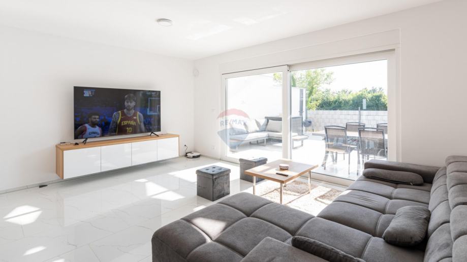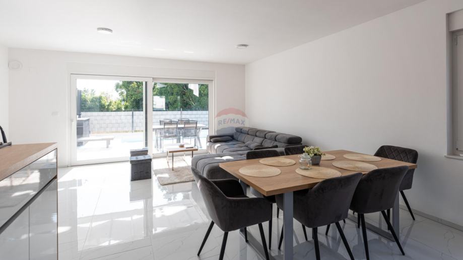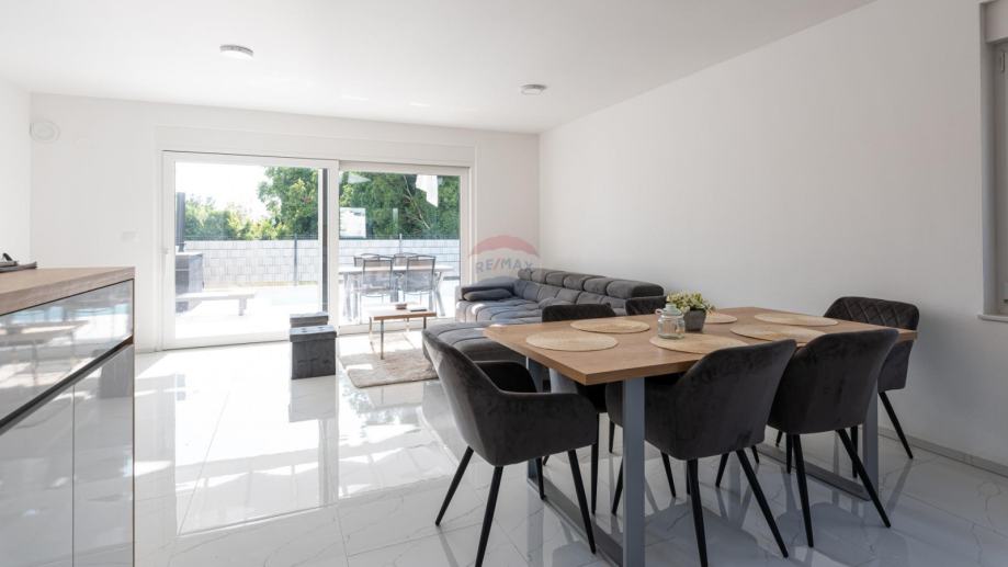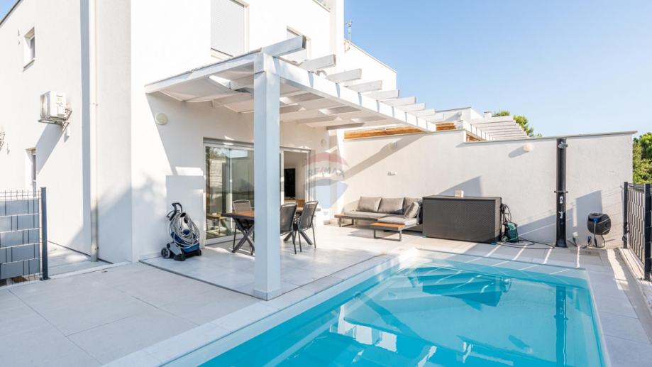 Kuća je potpuno opremljena i spremna za useljenje. Idealna je za obitelj ili kao investicija za luksuzni odmor uz more.