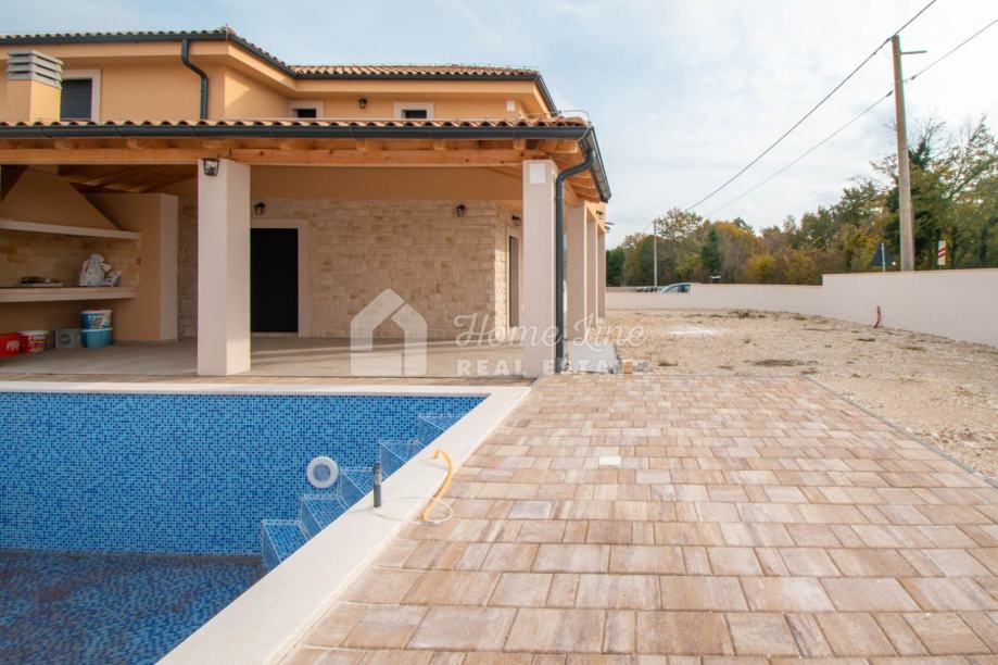 U malom i mirnom selu nedaleko Juršići prodaje se nova rustikalna kuća. Smještena je na pravilnoj parceli površine 497 m2 s bazenom 28 m2 i ljetnom kuhinjom.