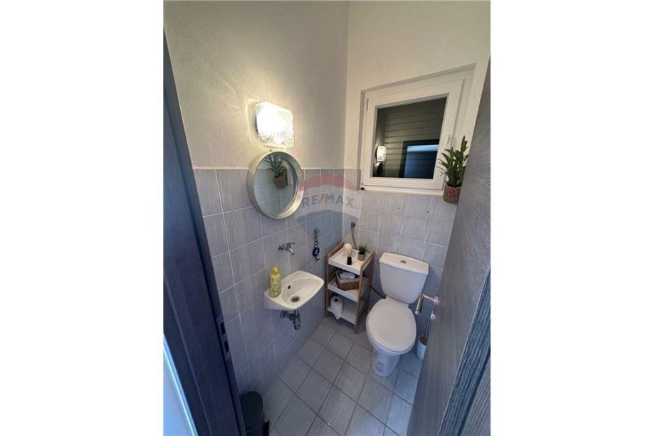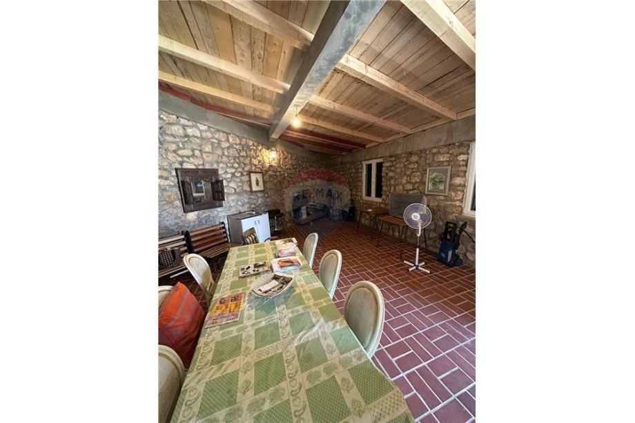 Okućnica je površine 497 m2 na kojoj se nalazi velika terasa (natkrivena i nenatkrivena), bazen, te konoba od 70m2 za druženje i zabavu.