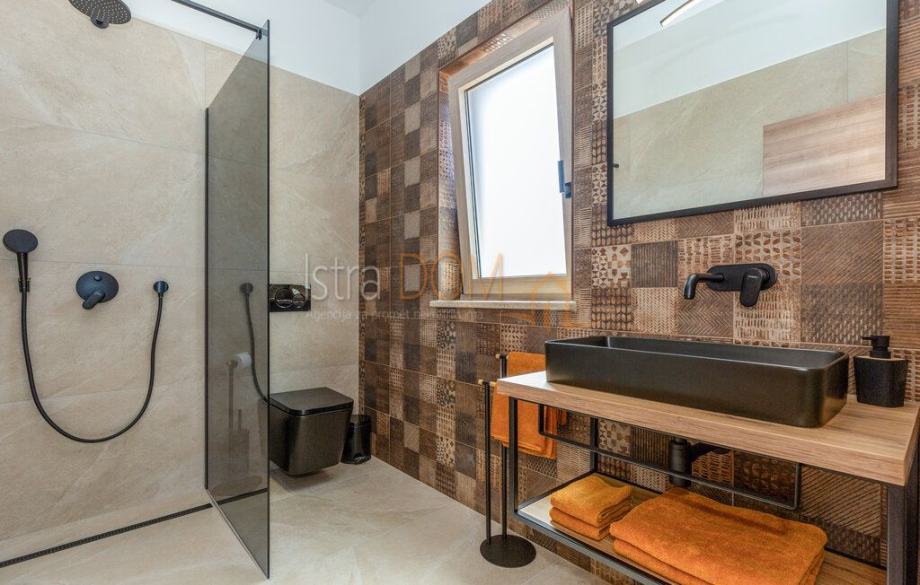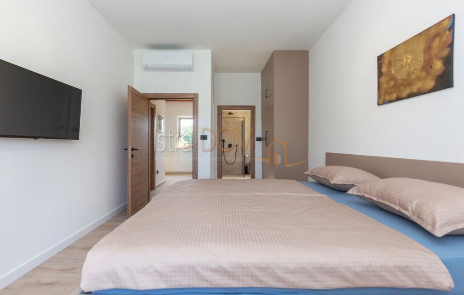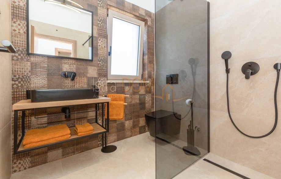 U prizemlju se nalazi moderna kuhinja, blagovaonica i dnevni boravak otvorenog tipa, uz jednu spavaću sobu i kupatilo, što ga čini idealnim za obiteljski život ili druženja. Unutarnjim stepeništem dolazi se na prvi kat, gdje su smještene dvije prostrane spavaće sobe, svaka opremljena vlastitom kupaonicom, što osigurava privatnost i udobnost.