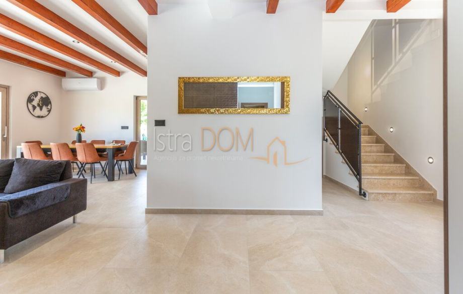 Na prodaju je prekrasna nova kuća visoke kvalitete, smještena na mirnoj lokaciji, udaljena samo 7 km od Labina i 12 km od predivnog Rapca.