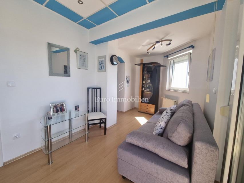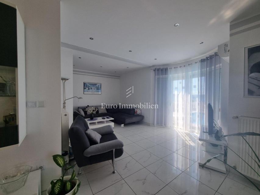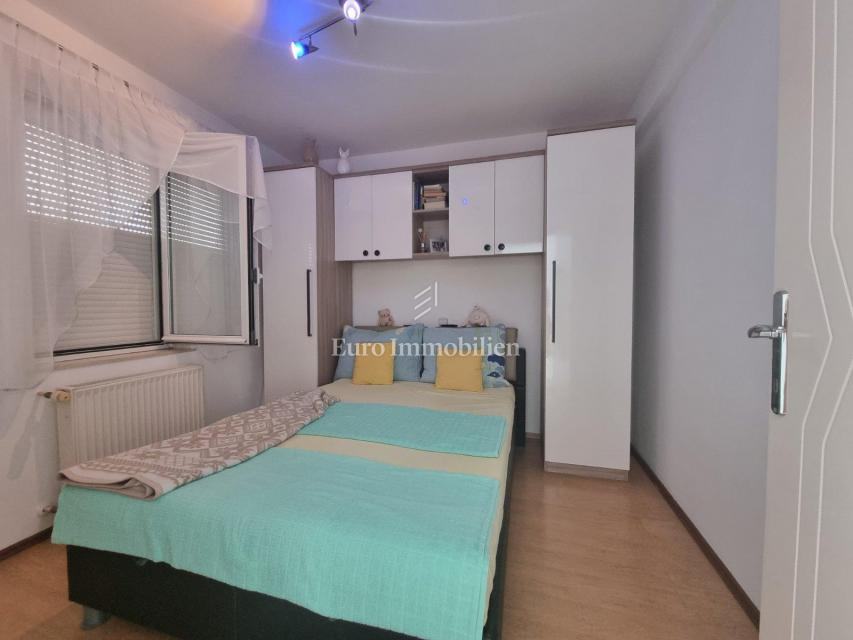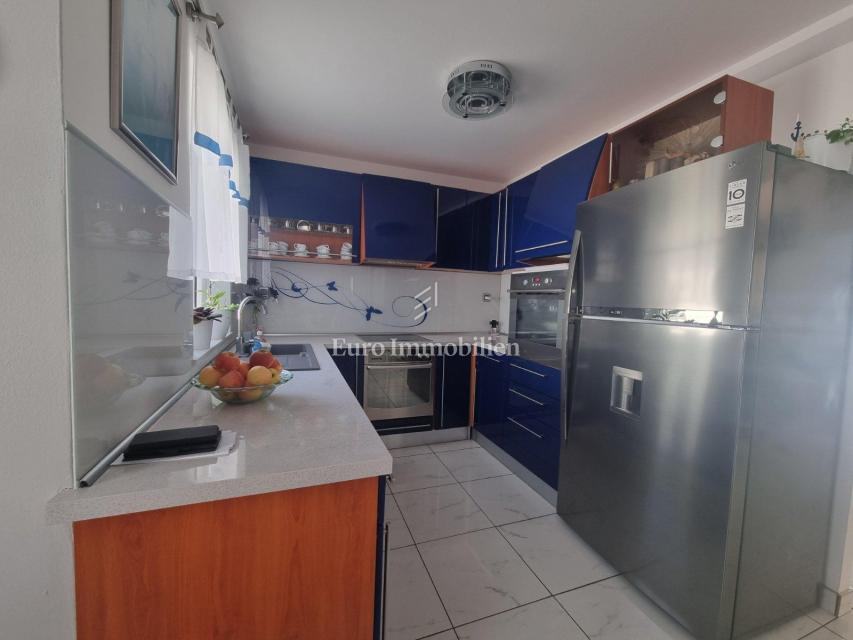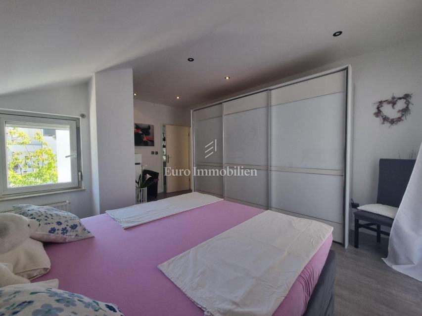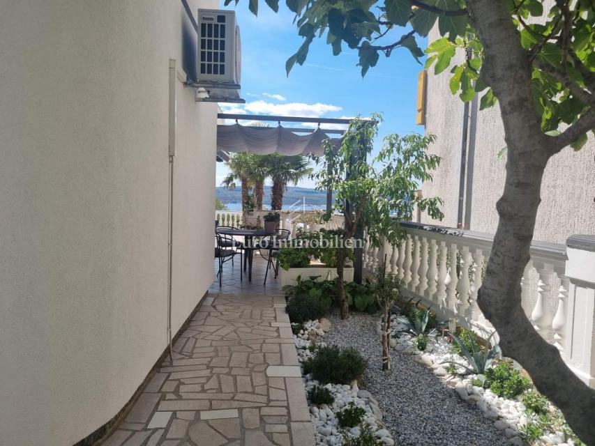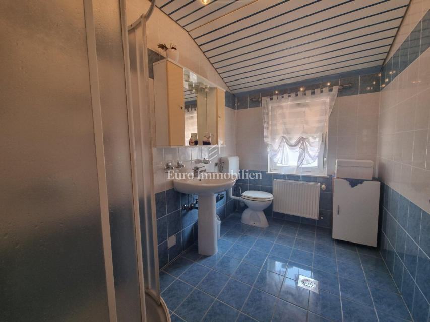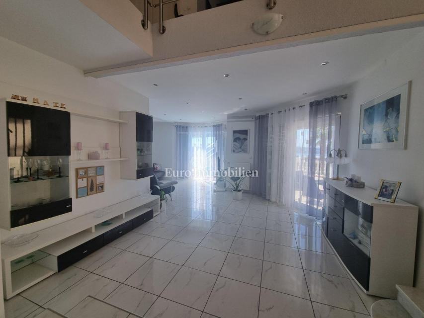 Kuća se sastoji od suterena, prizemlja i kata. Iza kuće nalazi se jedan jednosobni apartman, kotlovnica i pušnica. U suterenu kuće nalaze se dvije garaže i studio apartman. Prizemlje se sastoji od jedne spavaće sobe, kupaone, ulaznog hodnika te prostranog otvorenog prostora (kuhinja, blagovaona i dnevni boravak). Unutarnjim stepenicama ide se na kat gdje se nalaze dvije spavaće sobe s dvije kupaonice te prostrani hodnik. Jedna soba ima izlaz na balkon, a druga na terasu s koje se pruža panoramski pogled na more. Unutar okućnice osim bazena sa sunčalištem nalazi se prekrasni vrt s terasom i kaminom. Kuća za život, ali i za korištenje u turističke svrhe!